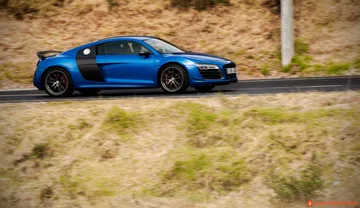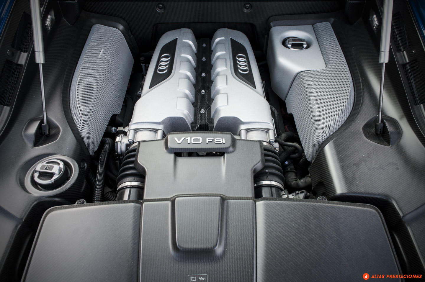 Sus suspensiones, la puesta a punto de su chasis, me deja con una muy gratificante experiencia en el paso por curva, más aún si tenemos en cuenta que estamos tratando con todo un superdeportivo de motor central, de grandes cotas. No tiene la agilidad de un pequeño GTI, es obvio, está un pequeño punto por detrás de lo que nos puede ofrecer, cuando de agilidad se trata, un 911 GTS, pero es una maravilla como se desenvuelve nuestro azulado compañero, se siente, lo siento, diferente a los R8 V10 que he tenido la oportunidad de probar, siento como si, desde su chasis, se me estuviera pidiendo involucrarme más con una conducción espirituosa. Accedo.