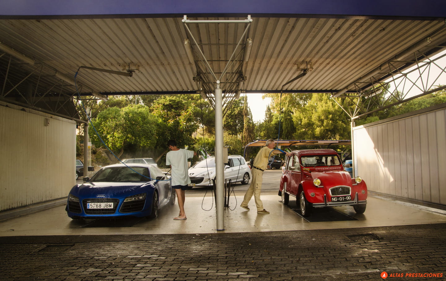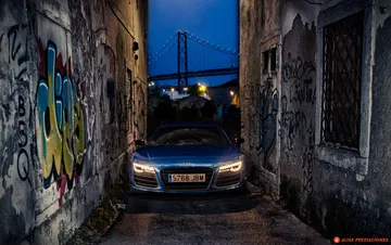 El atardecer da paso a la noche, nos servimos de algunas zonas en obras para unas fotos de corte más urbano. En ciudad su consumo medio se está saldando con unos 12-14 l/100 km, no me parece desmesurado. Las estrechas calles de Lisboa ponen en algún que otro aprieto a la anchura del R8, una anchura que recordemos supera el “metro noventa”, también, durante estos días, nos hemos visto las caras con rampas de garaje imposibles, es bajo, realmente bajo y el peso de su dirección no ayuda en ciertas maniobras. Sabíamos donde nos metíamos y como siempre digo con este tipo de coches: para mí esas incomodidades son parte del encanto.