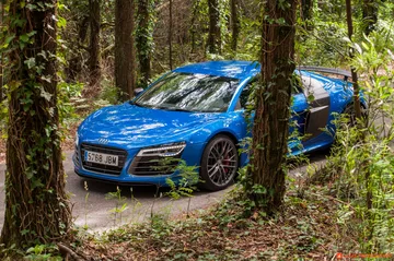 Aparco muy convencido de la dinámica del R8. Me gusta la puesta a punto de su chasis, su equilibrada alma, por mucho que no me gusten habitualmente este tipo de enfoques, la respuesta del V10, veloz y sin sobre saltos, jugando arriba, con un sonido natural, auténtico. Dirección y suspensión también son dignas de elogio. Por el peso, tacto y capacidad de comunicación de la primera, por lo polivalente y efectiva de la segunda.