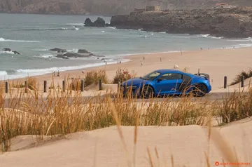 De las gigantes dunas de la playa do Guincho a un verde paisaje pocos kilómetros más allá por el que discurre una revirada carretera secundaria. El mar de fondo. La hora, en plena siesta, propicia además que no nos topemos con ningún coche, no hay siquiera ciclistas, habituales de esta zona. Deslizo mi dedo hasta el botón «Sport«, situado a unos escasos milímetros de la palanca del cambio y bajo una marcha con la leva izquierda. Enseguida el rugido, un solo de escape.