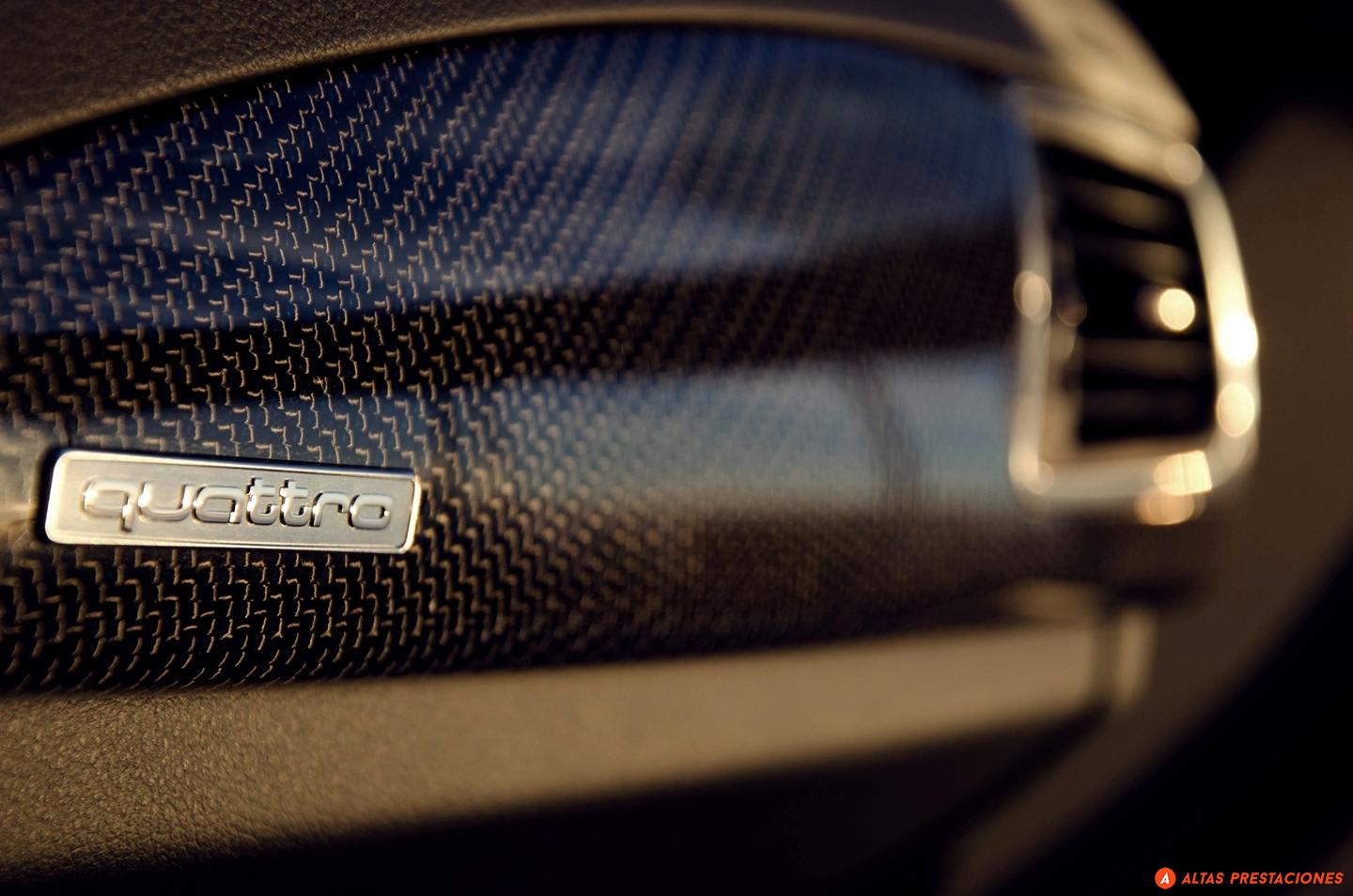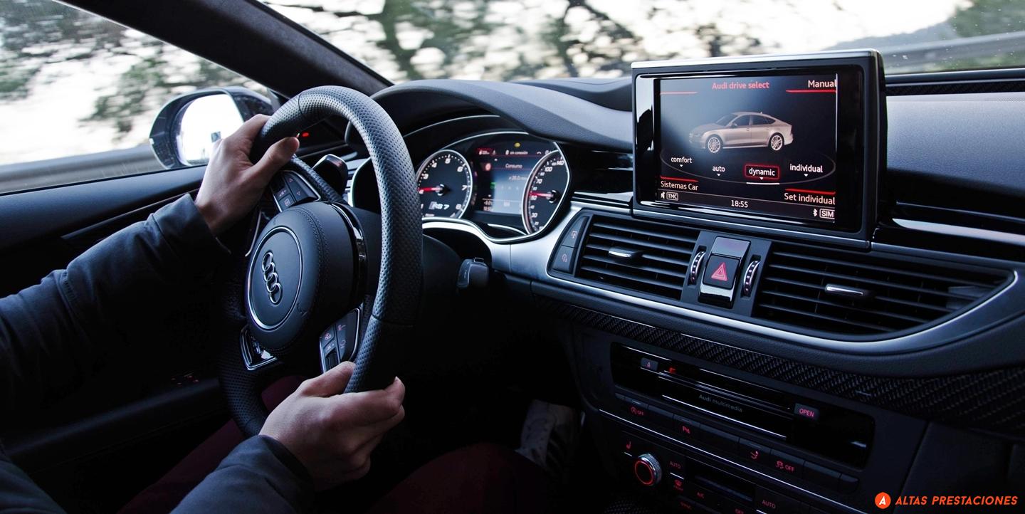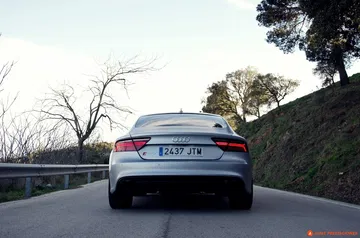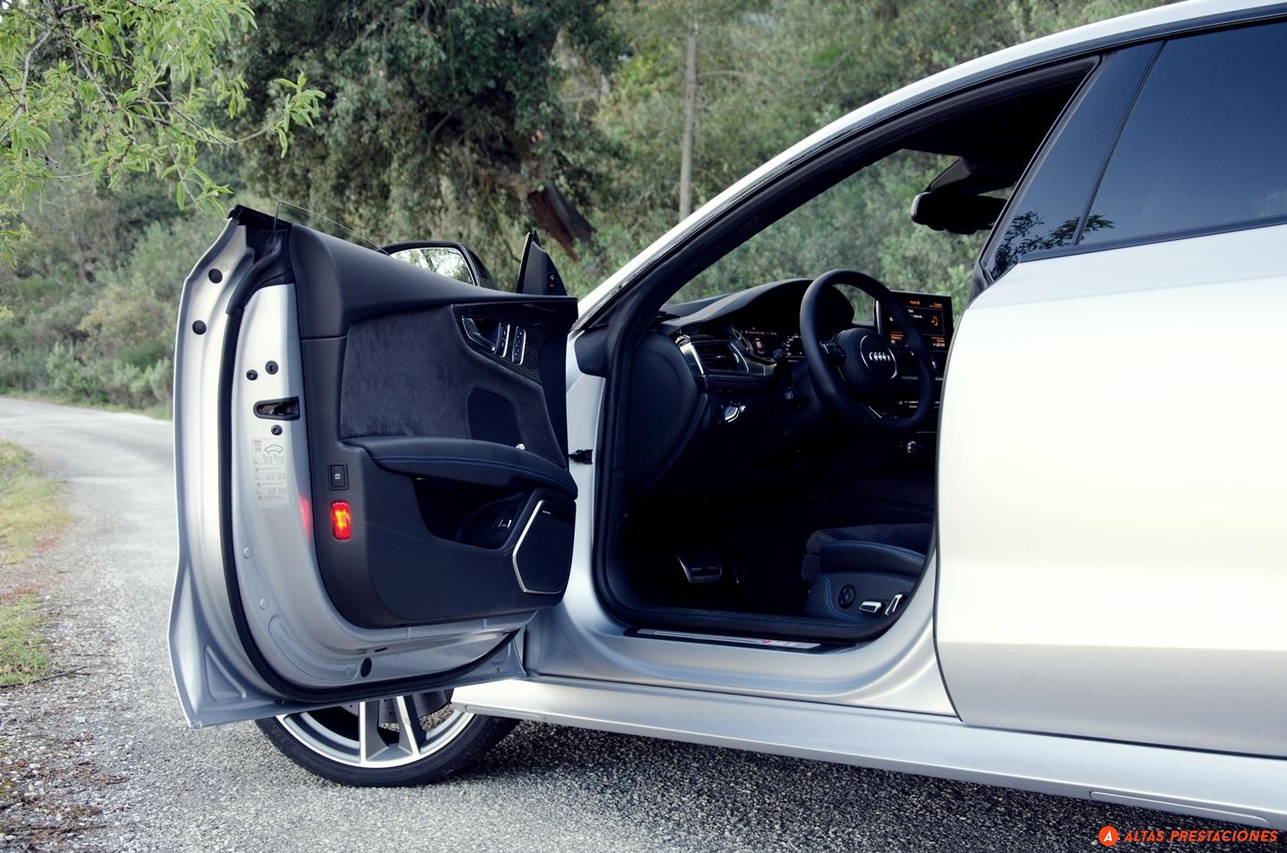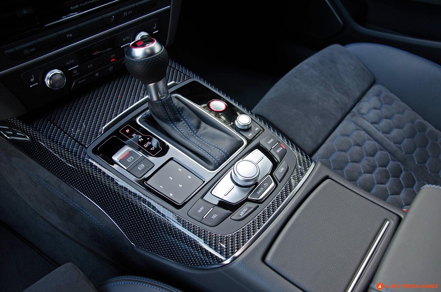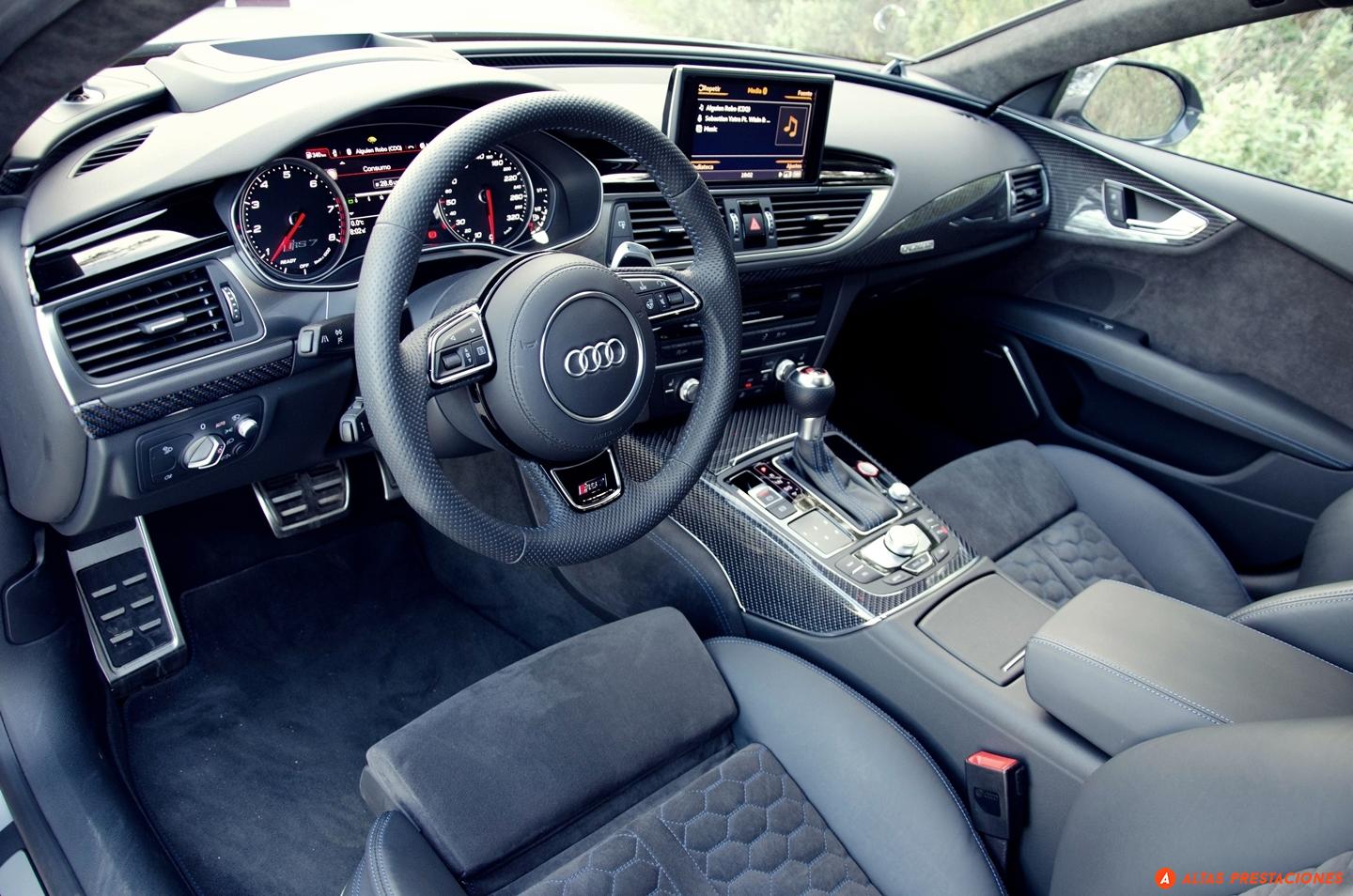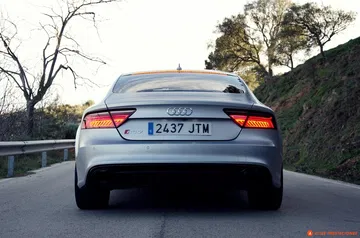 Tras unos metros recorridos el RS 7 muestra su primera faceta viajando en modo «Auto», es un RS pero no se comporta como un coche excesivamente duro o radical que te obliga a ir peléandote con él en el agobiante tráfico urbano. Goza de esa múltiple personalidad que lo convierten en el deportivo de uso a diario. Dejada atrás la ciudad me animo a ir subiendo el ritmo para tantear su transmisión automática de 8 relaciones (por convertidor de par) y su sistema de tracción total quattro. Poco a poco, curva a curva el RS 7 se va destapando y yo cada vez me siento más cómodo. Es dócil, que no manso. Es ágil pese a su enorme tamaño y peso. Pero sobre todo goza de una mecánica V8 que no dudo en tildar como una de las mejores que existe en el mercado.