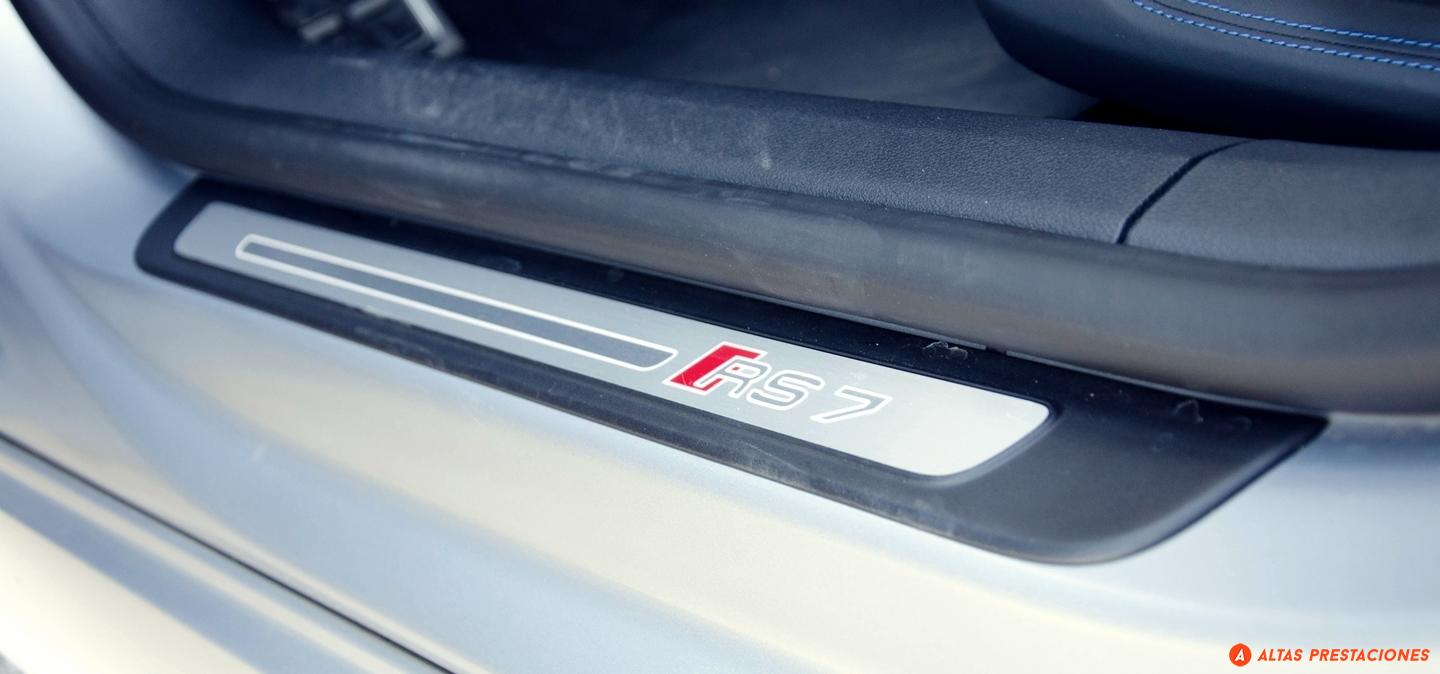 Son poco más de las 14:00 cuando tras bajar a un aparcamiento subterráneo me encuentro de bruces con el Audi RS 7 Sportback Performance que será mi compañero de faenas durante los próximos días. Lo intuyo a través de una luz tenue gracias a una pintura mate de color plata y su peculiar caída del portón posterior, pero sobre todo se que es un RS 7 gracias al protagonismo de su difusor donde son cobijadas dos salidas dobles de escape que para esta ocasión lucen los anagramas de Audi Sport y Akrapovic. Si acaso no eran suficiente los sellos de RS 7 y Performance, añadir los logos de Audi Sport y Akrapovic roza lo obsceno.