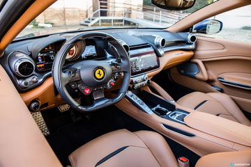 Para que andarnos por las ramas, hablar de habitabilidad e infoentretenimiento en un Ferrari se nos sigue haciendo raro, pero los tiempos han cambiado y Ferrari ha sabido adaptarse a ellos con bastante buen tino para ofrecer algo más sin perder la esencia que ha de tener todo Ferrari. 4 verdaderas plazas son las culpables en parte de su nombre, y en ellas Ferrari ha querido imprimir todo el confort que cabría esperar en una berlina. El acceso a las plazas posteriores, pese a hablar de un coupé de dos puertas laterales, me resultó más que satisfactorio, más aún teniendo en cuenta que ese pequeño sacrificio nos permite disfrutar de una carrocería de claros tintes shooting brake.