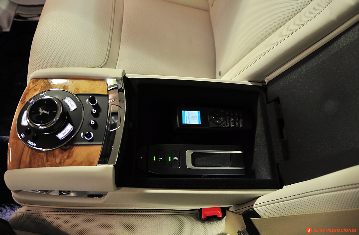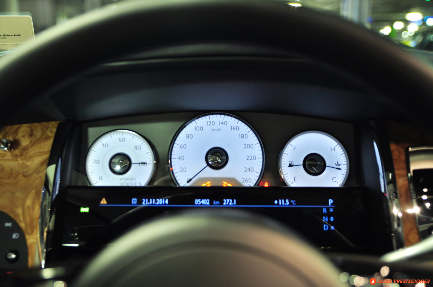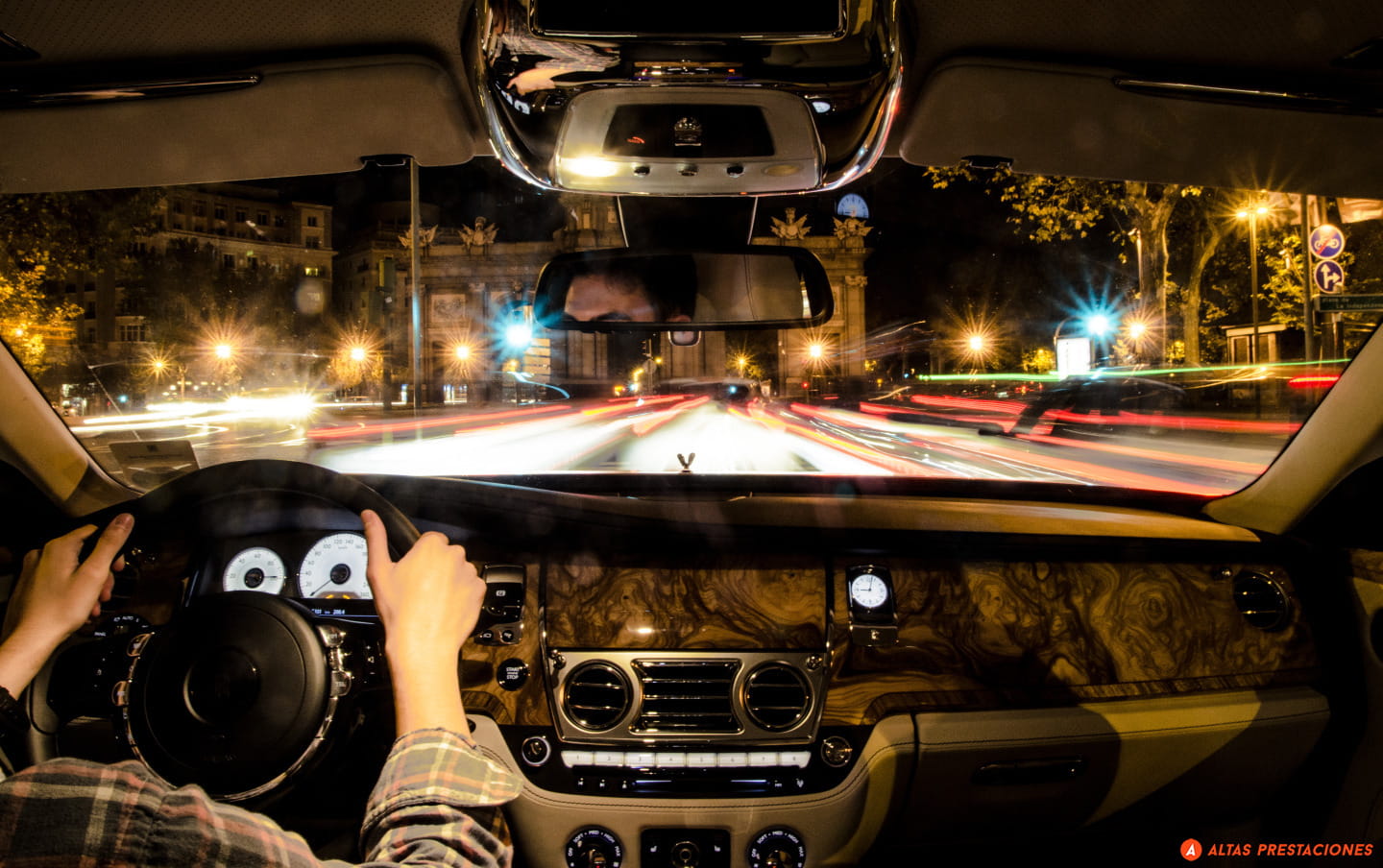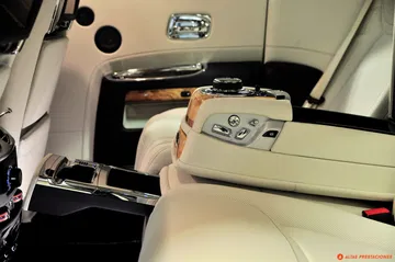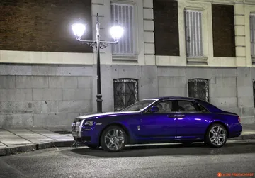 Cinco horas no dan para hablar de la fiabilidad de este Ghost, pero el ascenso nocturno de la cara este de Navacerrada sí que permite hablar de la iluminación. Y es que el Ghost, más que iluminar parece estar en el centro de un escenario manejado por su propio técnico de luces. Al pulsar el mando de apertura de las puertas no sólo se ilumina el interior del coche como un caro escaparate, sino que unas luces led alumbran el tirador de la puerta. Dentro del coche la ambientación luminosa lo convierte en un espacio cálido y acogedor. Un sensor de movimiento activa una luz cuando metemos la mano en el hueco de la puerta donde se guardan los mapas, y el tirador interior de la puerta siempre está iluminado con una ténue luz difusa. Por delante y en el exterior, el “Espíritu del éxtasis” se recorta siempre contra un blanco haz que ilumina los pinos de la sierra de Madrid. Conversando sin elevar la voz, el coche se desliza por la estrecha y sinuosa carretera como un fantasma, dejando una estela de luz. Abajo espera la ciudad y también el momento de devolver el coche.