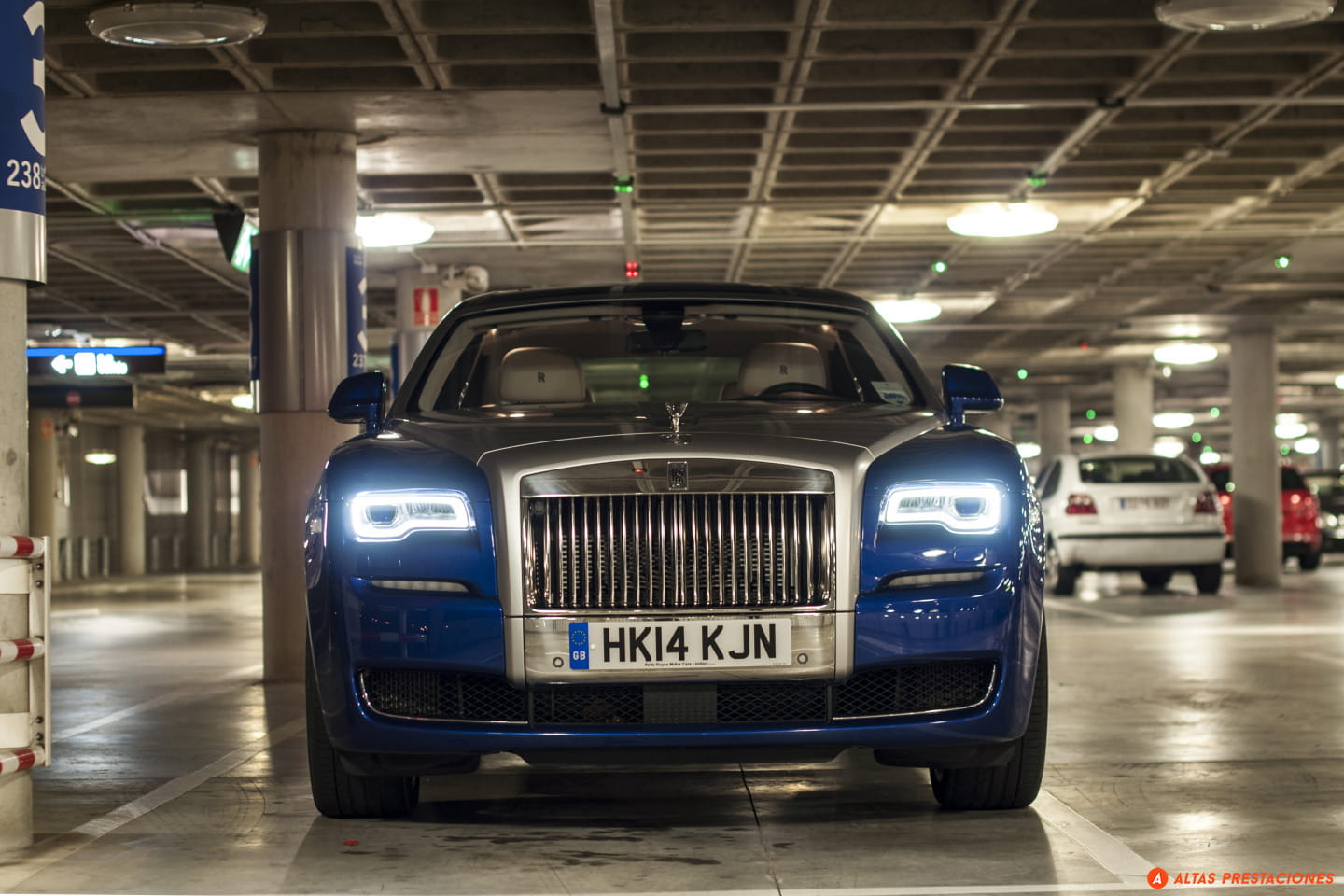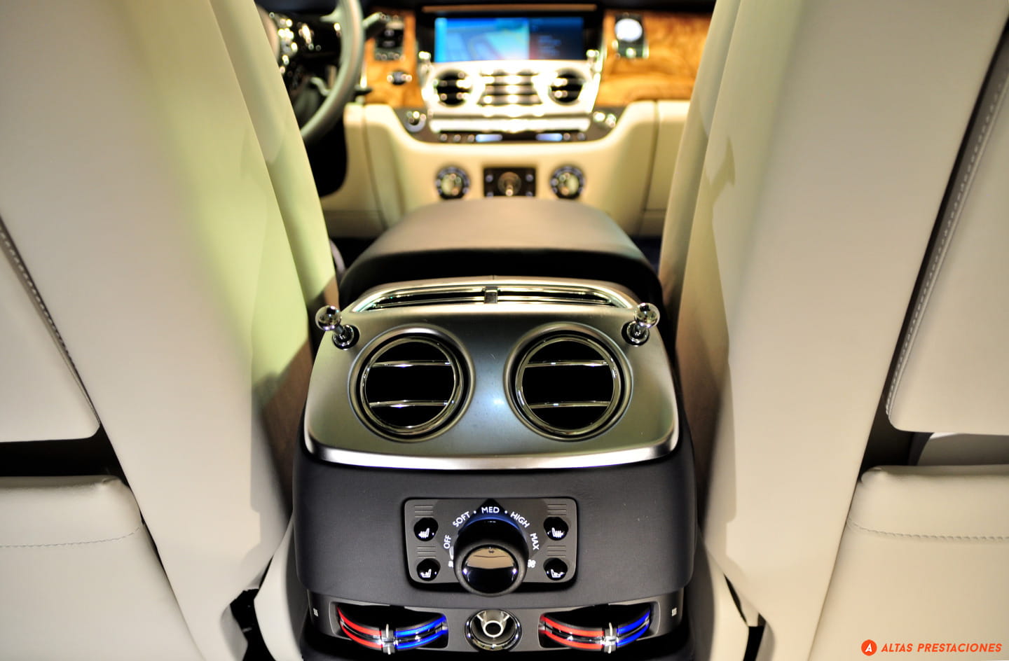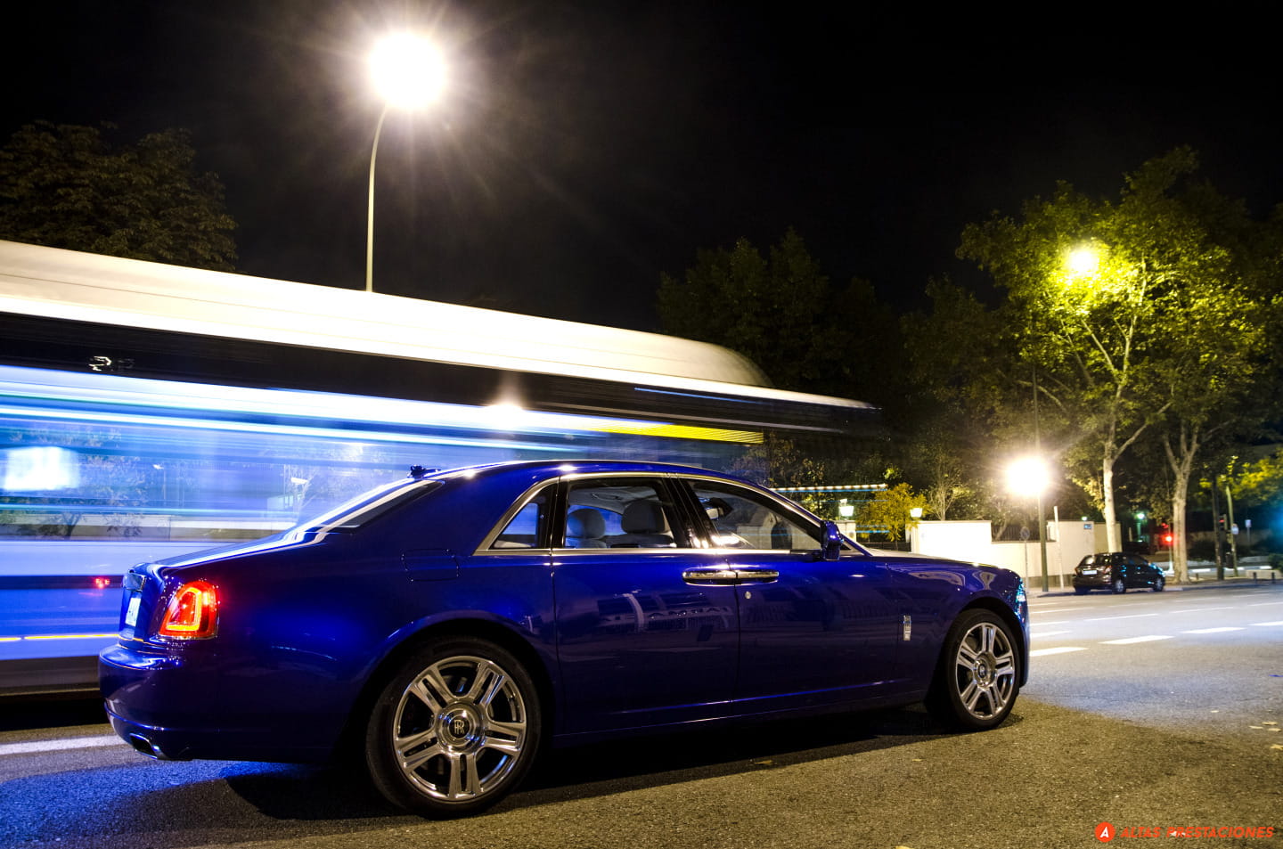 Cinco horas no dan para hablar de la fiabilidad de este Ghost, pero el ascenso nocturno de la cara este de Navacerrada sí que permite hablar de la iluminación. Y es que el Ghost, más que iluminar parece estar en el centro de un escenario manejado por su propio técnico de luces. Al pulsar el mando de apertura de las puertas no sólo se ilumina el interior del coche como un caro escaparate, sino que unas luces led alumbran el tirador de la puerta. Dentro del coche la ambientación luminosa lo convierte en un espacio cálido y acogedor. Un sensor de movimiento activa una luz cuando metemos la mano en el hueco de la puerta donde se guardan los mapas, y el tirador interior de la puerta siempre está iluminado con una ténue luz difusa. Por delante y en el exterior, el “Espíritu del éxtasis” se recorta siempre contra un blanco haz que ilumina los pinos de la sierra de Madrid. Conversando sin elevar la voz, el coche se desliza por la estrecha y sinuosa carretera como un fantasma, dejando una estela de luz. Abajo espera la ciudad y también el momento de devolver el coche.