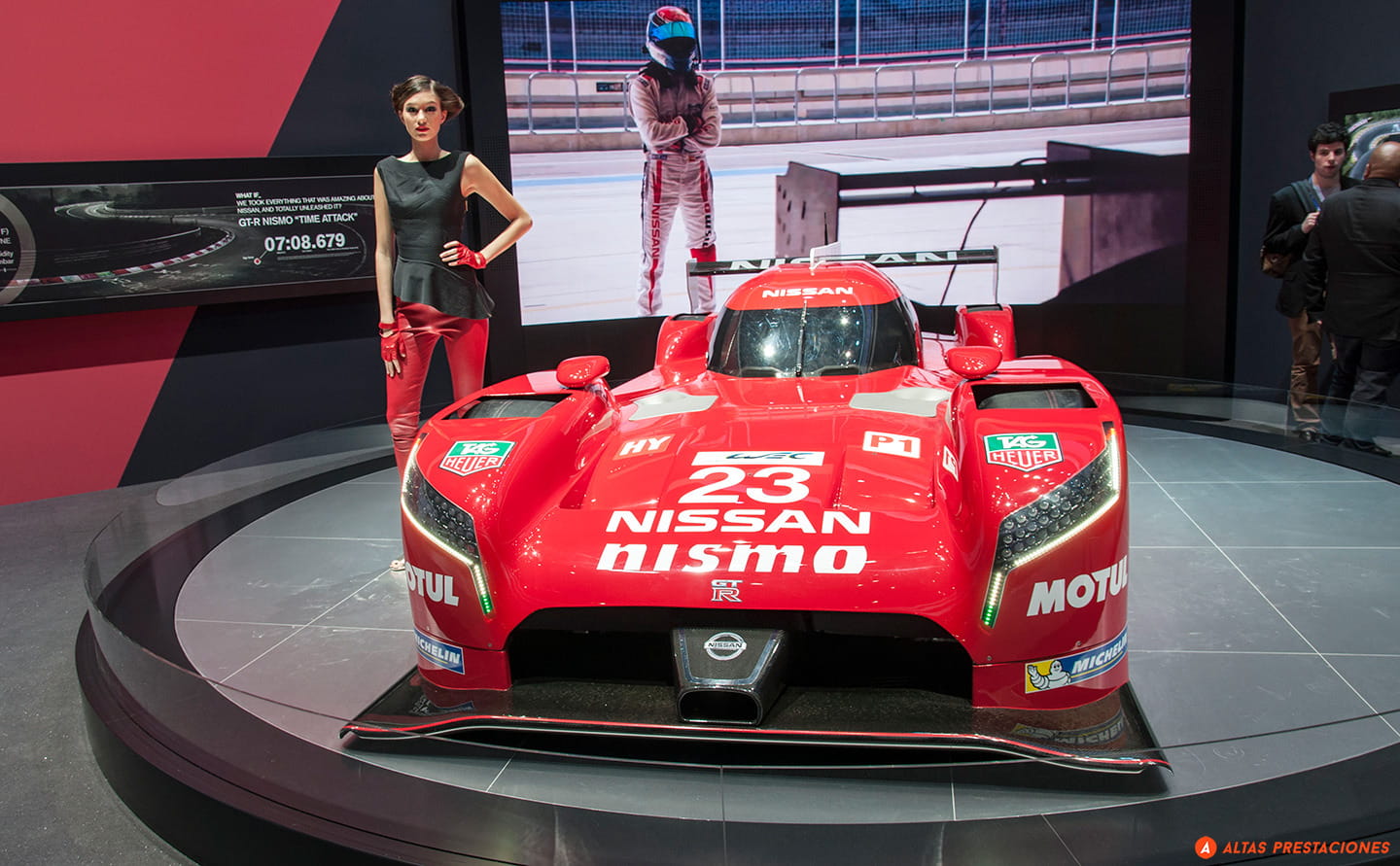 Y entre todos los deportivos de carreras presentes en el Salón de Ginebra no podía olvidarme de uno muy concreto. El Nissan GT-R LM NISMO es la atrevida apuesta de Nissan para medirse – ellos dicen que de tú a tú – con los Audi, Toyota y Porsche en el WEC y en las 24 Horas de Le Mans. Lo sorprendente es que este prototipo resulta rompedor en todos los aspectos, su motor es delantero, su tracción delantera, e incluso su sistema de escapes goza de salidas por delante de la cabina del piloto, sobre un inmenso capó. Buena parte del peso está repartido sobre el frontal, pero en Nissan disfrutan con este reto.