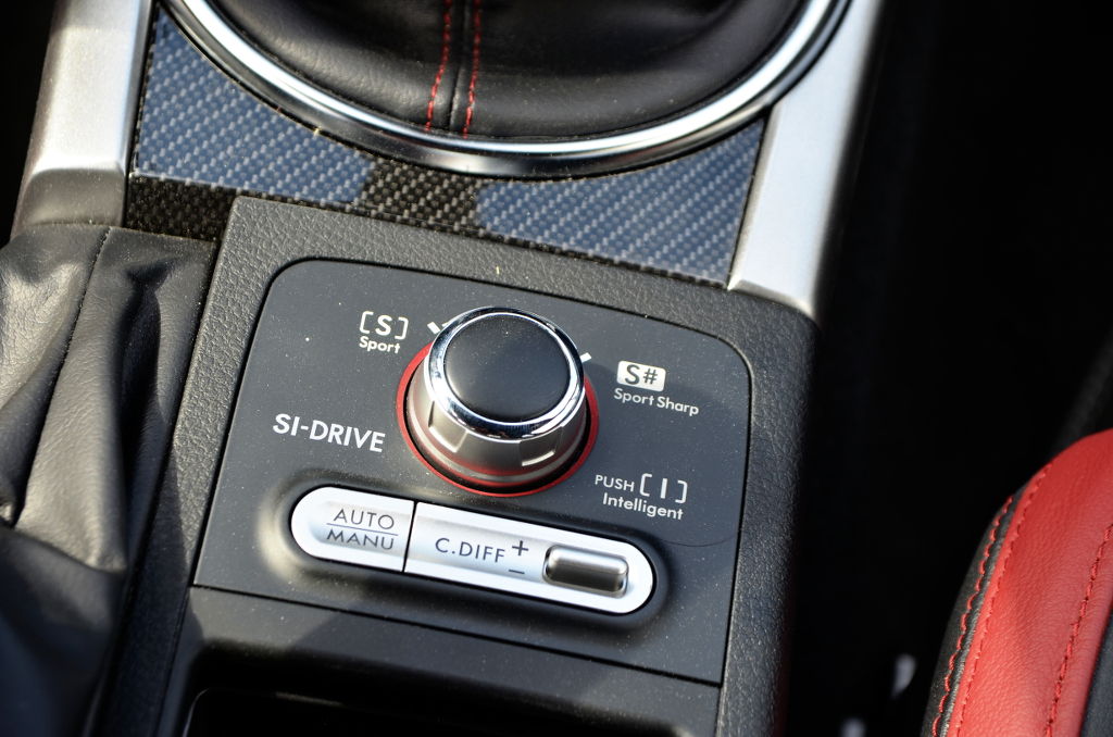 Cuenta con tres modos de conducción accionables desde el puente central. En el modo Intelligent prima un consumo contenido de combustible y una entrega más confortable. En Sport se saca ya a relucir la faceta deportiva del WRX STI, pero dentro de unos parámetros utilizables en el día a día. Por último, el modo Sport Sharp es el modo sin concesiones a otra cosa que no sea la deportividad.