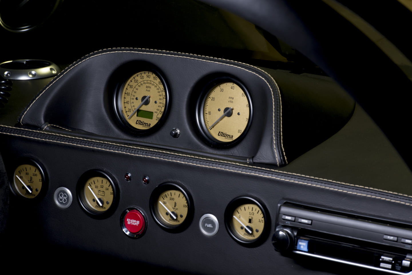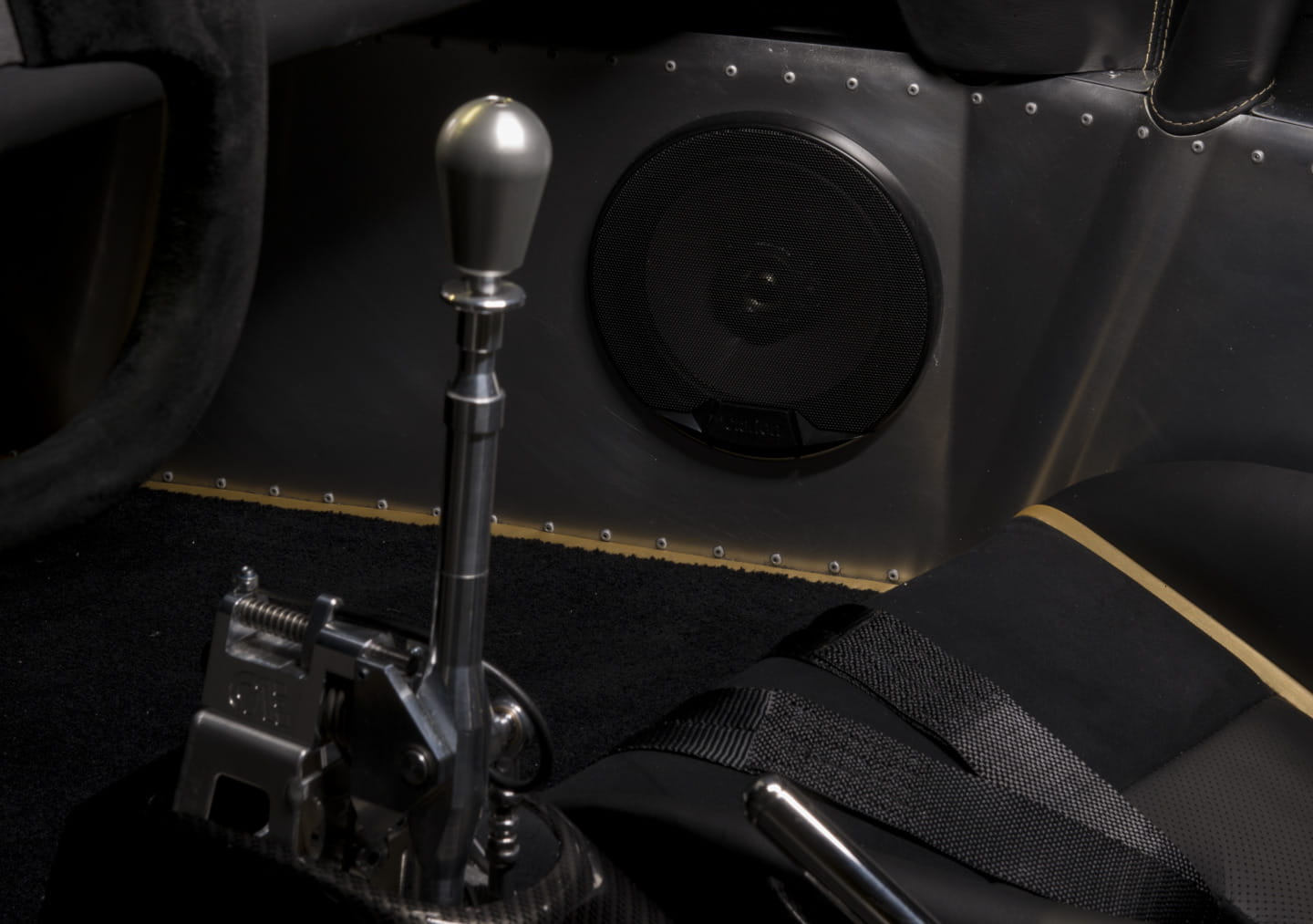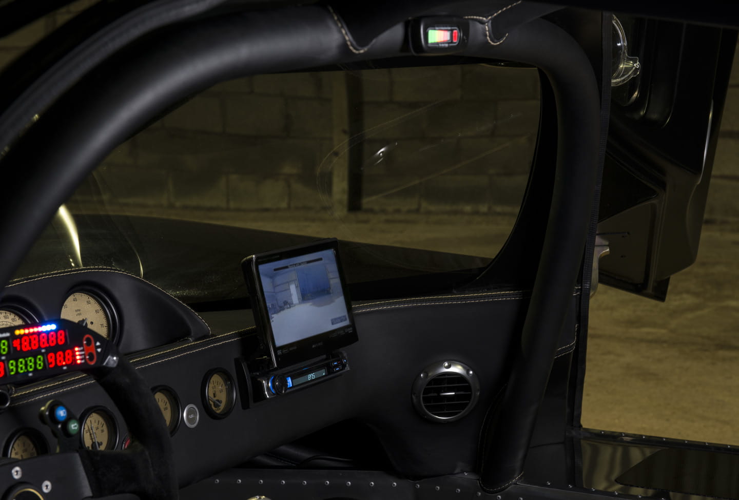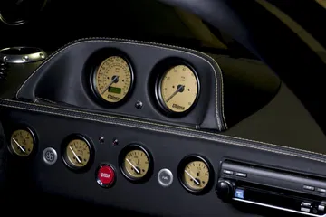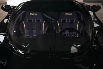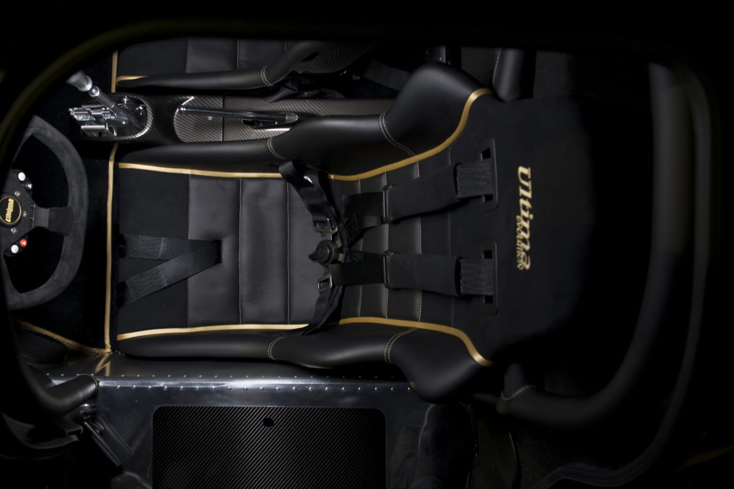 En su interior el ambiente de competición sigue muy presente con un salpicadero de sencillas formas cargado de relojes, con la posibilidad de contar con un volante con display digital en la parte superior, con una palanca de cambios de inmejorable presencia protagonizando la parte media de un habitáculo que sin embargo, por muy radical que nos parezca, también goza de numerosas comodidades pensadas para aquellos que quieren a este Ultima Evolution para ir más allá del circuito, encontrándonos con detalles acabados en cuero, aire acondicionado, sensores de aparcamiento, cámara de marcha atrás, sistema de sonido Alpine con navegador como opción…