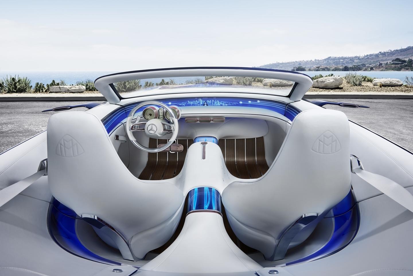 El Vision Mercedes-Maybach 6 Cabriolet es un prototipo que sí que muestra rasgos de diseño y soluciones de futuros modelos Mercedes, pero haciendo especial hincapié en el máximo lujo que la firma de la estrella es capaz de plasmar en un automóvil. De este modo su afilado e imponente diseño esconde un habitáculo muy retrasado para únicamente dos plazas y un enorme capó que a priori nos hace pensar en una refinada mecánica de al menos 12 cilindros, pero Mercedes-Maybach ya piensa más allá de los combustibles fósiles.