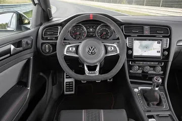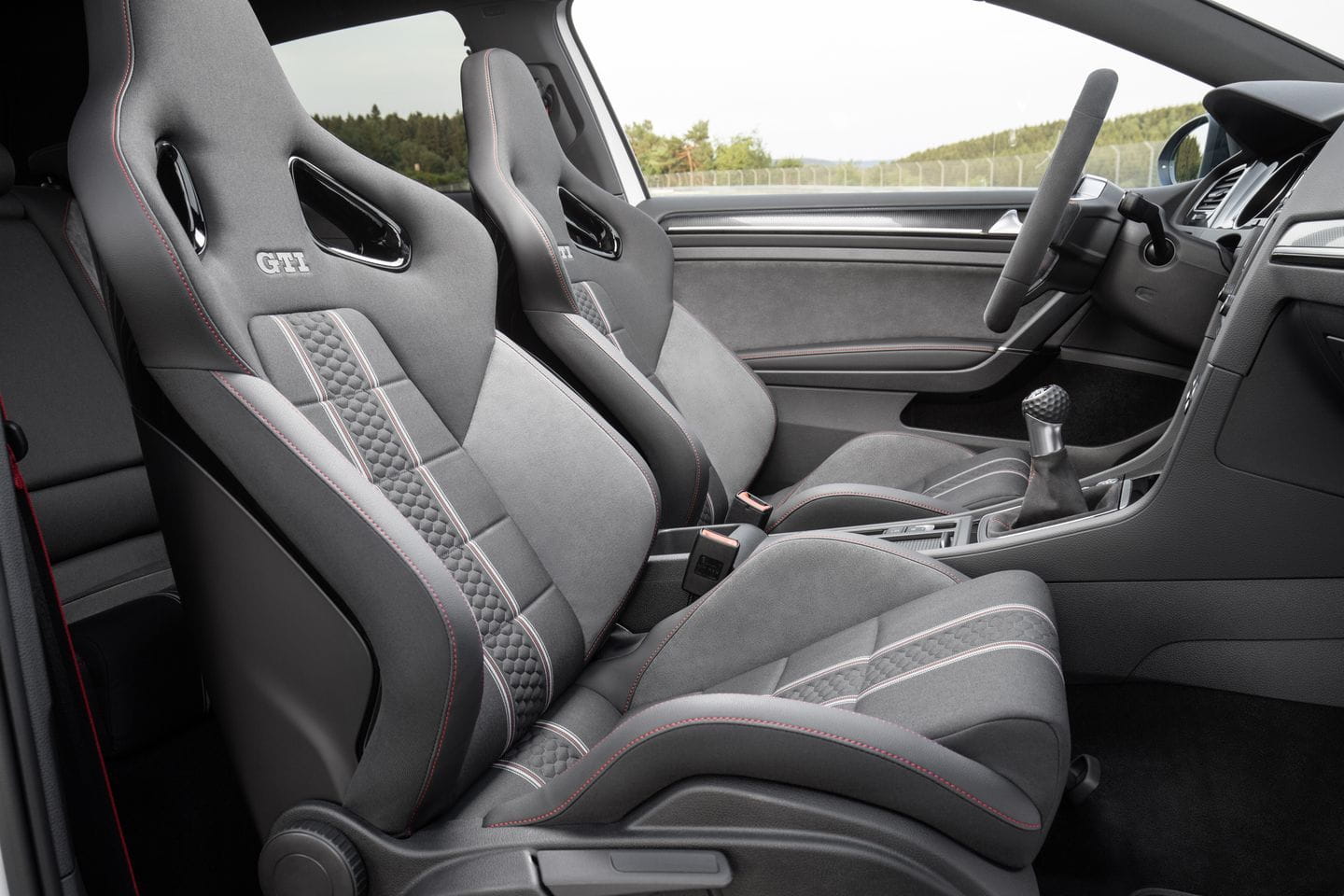 En el interior, apenas nada ha cambiado con respecto al prototipo. Esto quiere decir que conservamos los fantásticos bacquéts con el tapizado característico de los GTI, además de un volante forrado en Alcantara con una marca roja en la parte superior. El cuadro de mandos no varía, pero hay otros detalles interesantes, como el pomo de la palanca de cambios en forma de pelota de Golf, tal y como los modelos clásicos lo tenían. Algunas molduras, alfombrillas y vanos de las puertas son también específicos.