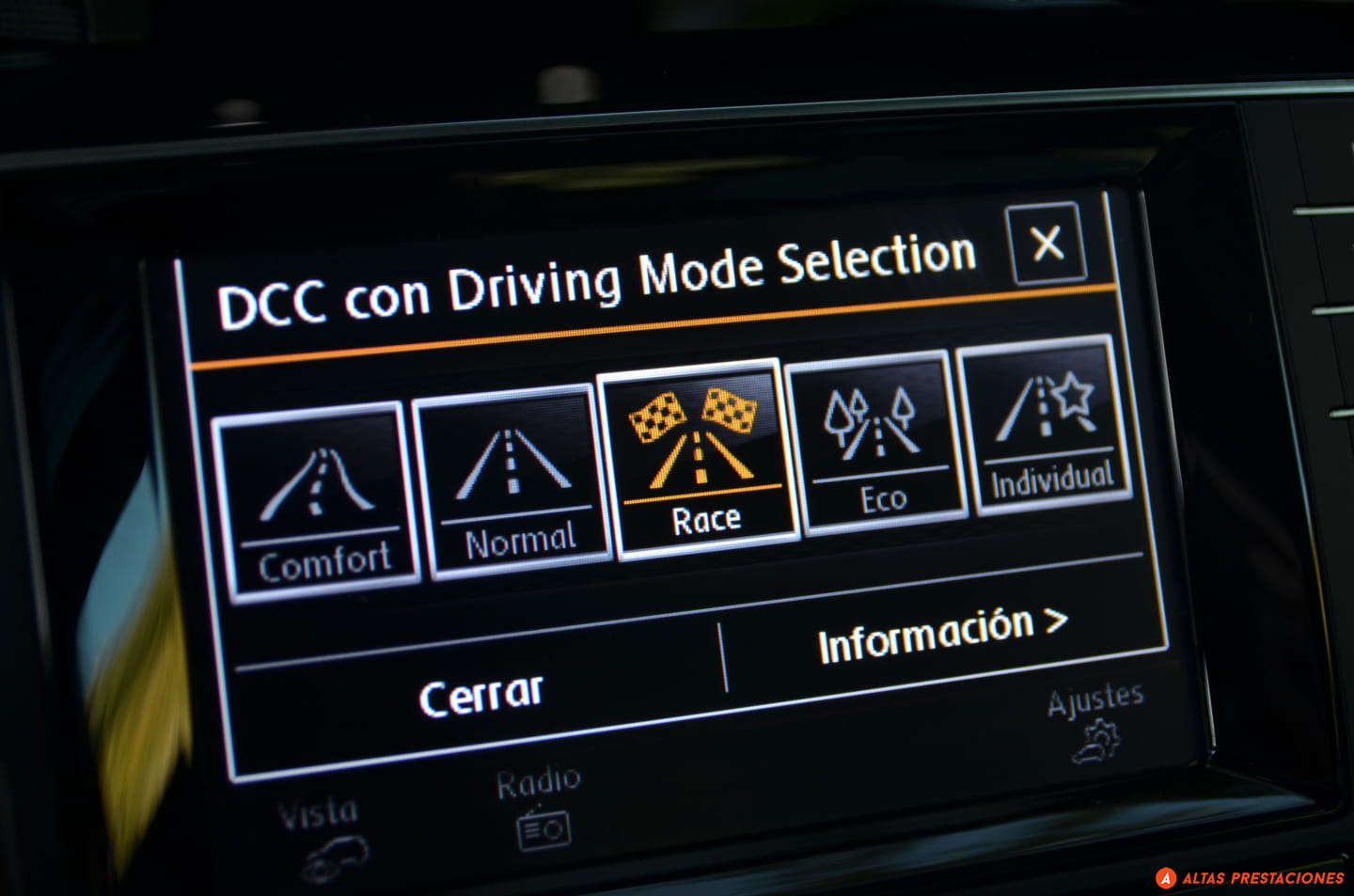 Su habitáculo sigue la misma formula. Es un Golf, queda claro en la disposición de elementos y ajustes, pero también nos encontramos con detalles específicos que pasan por una nueva instrumentación, un nuevo volante o una nueva dotación de asientos deportivos. Cómodo, con un buen repertorio de acabados… uno de los mejores ejemplos, como decía líneas más arriba, de equilibrada deportividad. De pies a cabeza, desde su motor de 2 litros sobrealimentado, su tracción total y su excelente paso por curva a su discreto aspecto exterior y su habitáculo, el Golf R es todo un auténtico ejercicio de eficiencia germánica vista a través del prisma de las altas prestaciones.