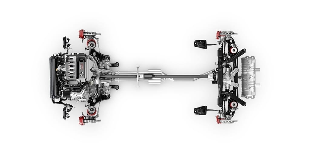 En el apartado de diseño encontramos una ruptura total con el Volkswagen Golf que está disponible en el mercado, prueba de ello es que lejos de usar la plataforma modular MQB ideada para reducir costes, el Volkswagen GTI Roadster Concept hace uso de un monocasco fabricado en fibra de carbono que lo colocan a la altura de modelos como el Lmaborghini Aventador.