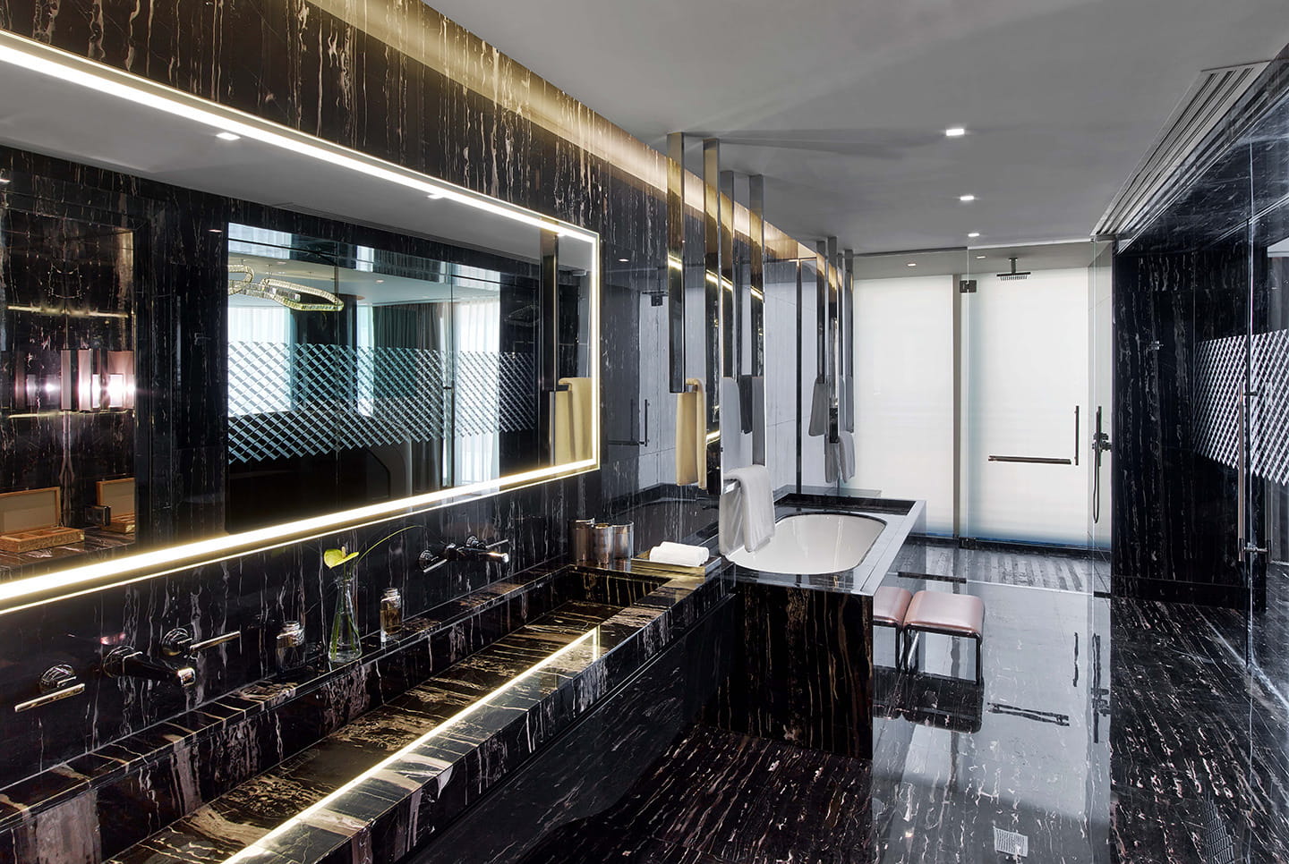 La nueva Bentley Suite del St. Regis Istanbul se ha instalado en una de las estancias más lujosas del hotel, contando con recibidor, habitación, sala de estar, doble baño y vestidor. Más de 125 metros cuadrados, en un espacio más amplio que el de la mayoría de los pisos en los que vivimos muchos españoles, con todo el mobiliario y los tapizados decorados siguiendo la estética del Continental GT. Su diseñador ha intentado que la estancia reflejase la estética de los vehículos de lujo de Bentley.
