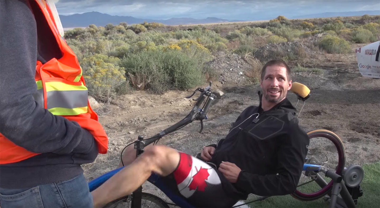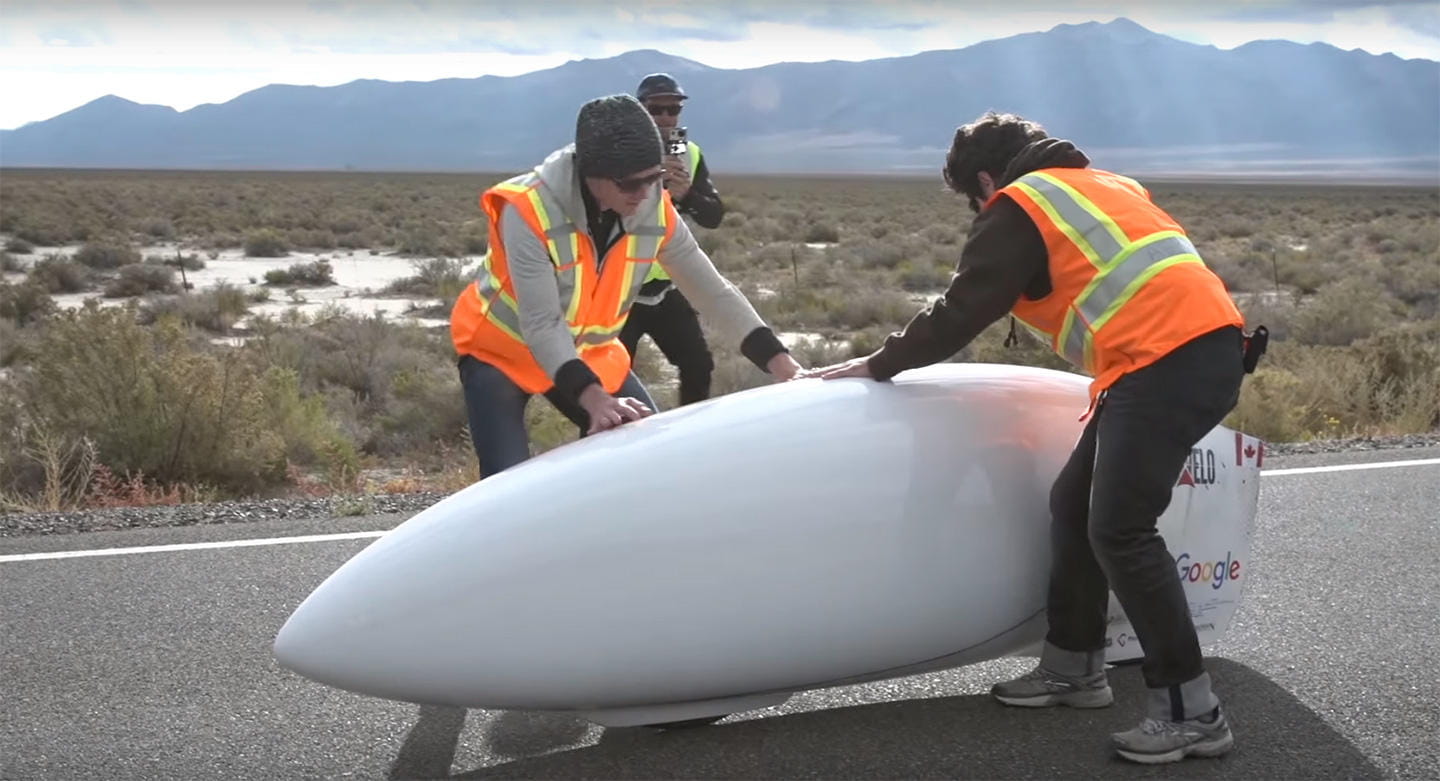 El proyecto AeroVelo Eta (del griego eta η, el símbolo de la eficiencia) nacía de la iniciativa de un grupo de ingenieros, que se propusieron crear la bicicleta más rápida del mundo. Como podrás imaginarte, y aunque la propulsión humana era un aspecto al que no podían renunciar, su diseño tuvo que adecuarse a los requisitos del reto, de manera que el bólido en cuestión es más parecido a un cohete, que a una bicicleta, al menos tal y como entenderíamos cualquiera de nosotros. Ese diseño tiene un objetivo muy claro, el de reducir en la medida de lo posible el rozamiento aerodinámico para conseguir que el movimiento que genere el ciclista en su intento de récord se traduzca en ganancia de velocidad. El escenario en el que se batió el récord no es otro que una inmensa recta, en el área de Battle Mountain, en Nevada, Estados Unidos.