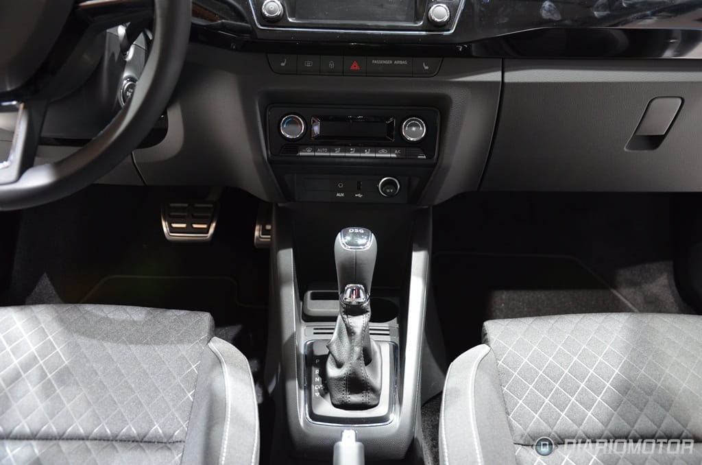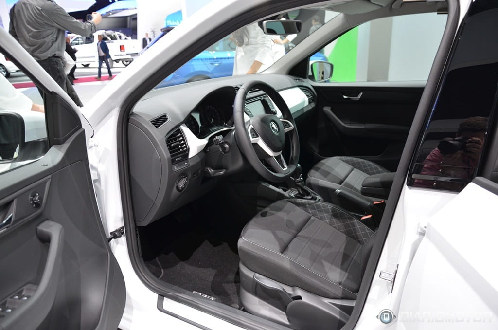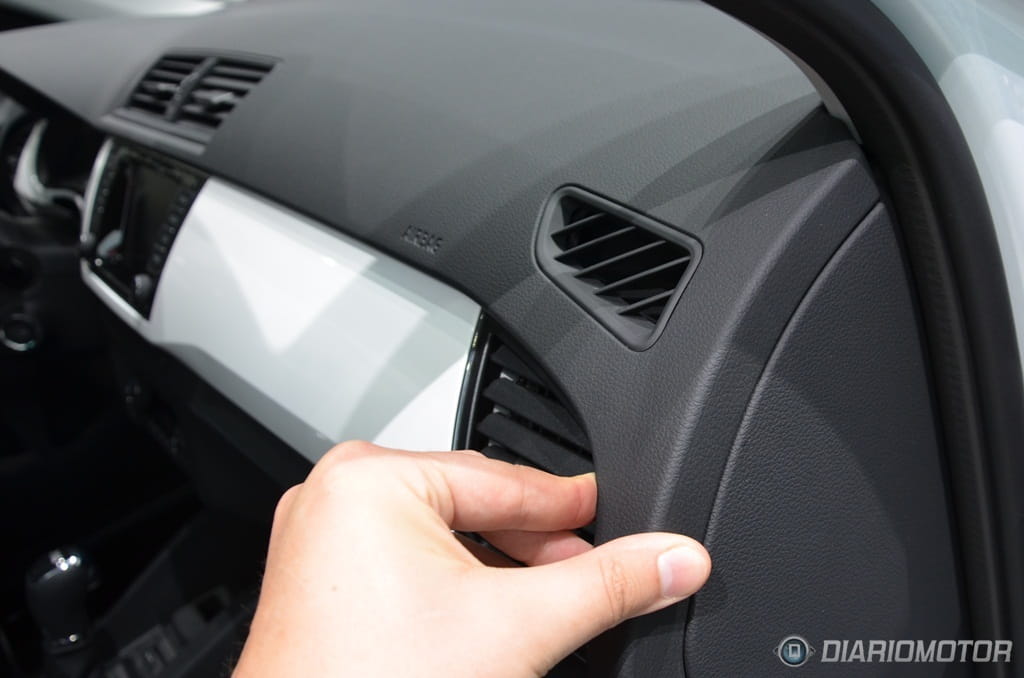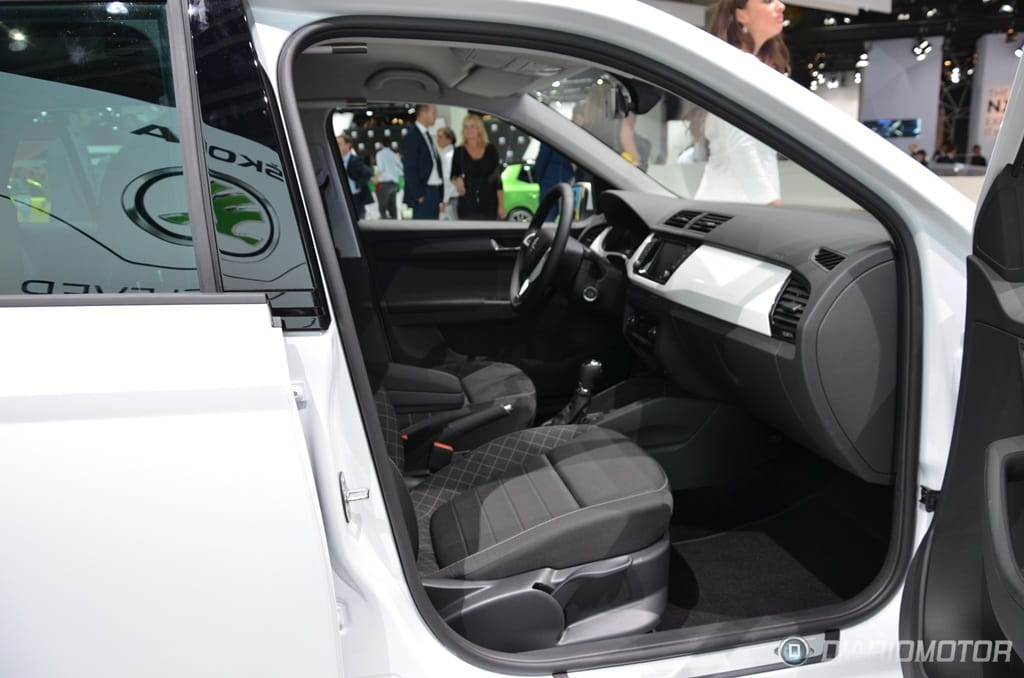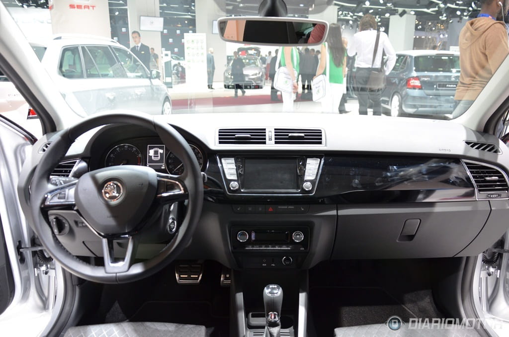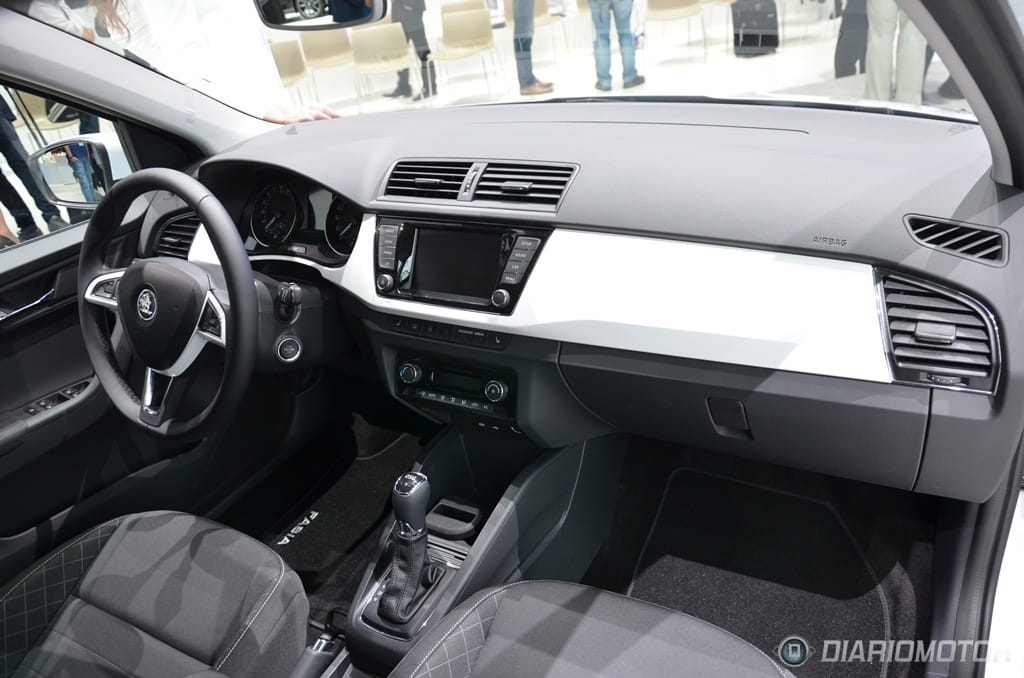 En el interior del nuevo Fabia, Skoda no ha corrido demasiados riesgos, y esto se aprecia desde el primer instante. Aquellos que busquen más carácter dentro de los urbanos de VAG tendrán que seguir confiando en el SEAT Ibiza. Las opciones de personalización disponibles en la gama Skoda permiten romper en cierto modo con esa sobriedad impuesta, pudiendo escoger el color de la moldura que recorre todo el salpicadero, elegir dibujos para las tapicerías o combinar paneles de carrocería y asientos en misma tonalidad.