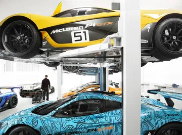 En un garaje en Woking, cercano a las instalaciones de McLaren Special Operations, los técnicos de la marca se encargan de poner a punto a esta selección de 12 P1 GTR de cara a los próximos eventos, recordando que este programa debutó en el circuito de Montmeló en octubre y que llevará a los afortunados propietarios de este modelo a los mejores circuitos del mundo (Yas Marina, Silverstone, Circuito de Las Américas…).