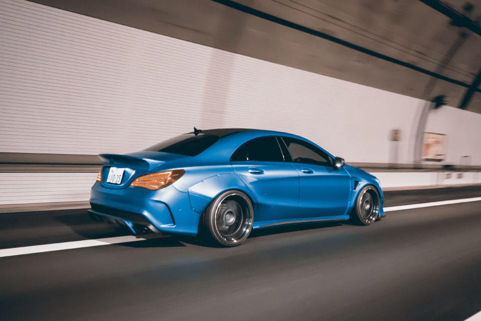Un nuevo splitter delantero, un nuevo alerón tipo lip de considerables dimensiones y claro, los ensanchados pasos de rueda, dándole al Mercedes CLA una estampa de lo más japonesa que además queda debidamente aderezada por un nuevo juego de llantas con una buena garganta.