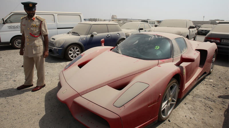 En 2012 se esperaba que este Ferrari Enzo fuera subastado. El gran problema llegó cuando las autoridades de Emiratos Árabes Unidos se encontraron con que este Enzo estaba siendo investigado por la Interpol. Aquella disputa legal impediría que la policía dubaití actuase siguiendo el protocolo habitual, el de subastar los coches incautados y abandonados.