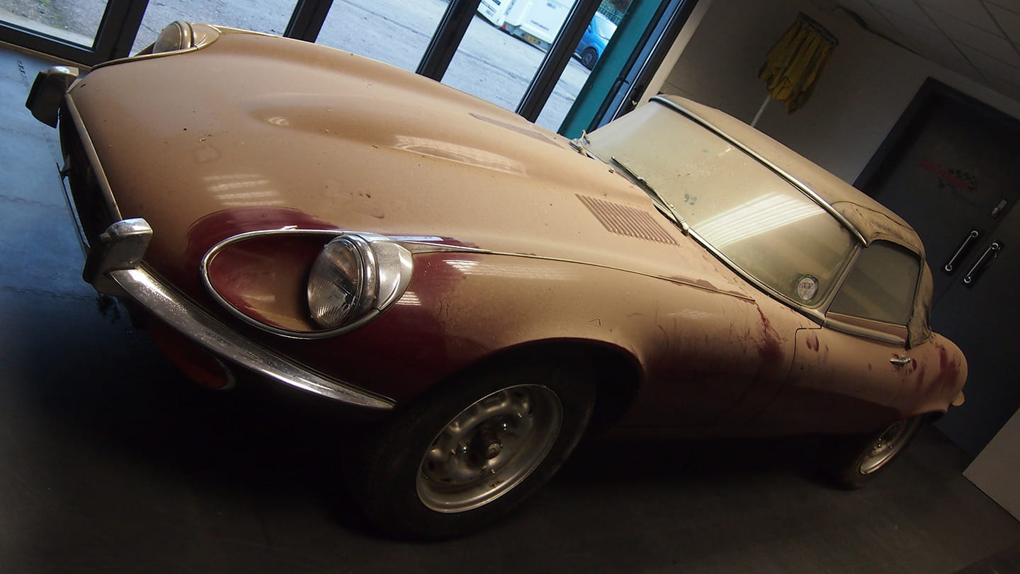 Desde que en 1973 se matriculase por primera vez, recién comprado, este Jaguar E-Type Series III V12 Roadster, solo ha pertenecido a una familia. El abuelo de su actual propietario, lo tuvo durante años aparcado en el garaje, en una tranquilidad absoluta solo rota por algunos paseos muy esporádicos. En 1993, el coche pasó a propiedad de su hijo, que tampoco tuvo demasiado tiempo de conducirlo, aunque por suerte se encargó de inmovilizarlo y protegerlo de manera idónea para evitar los destrozos que podía provocar el paso del tiempo.