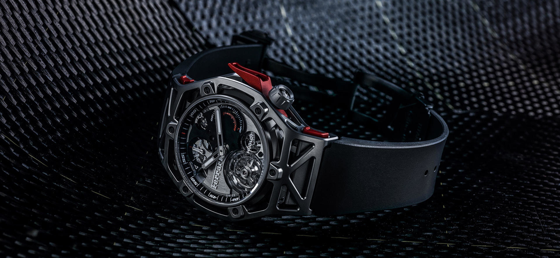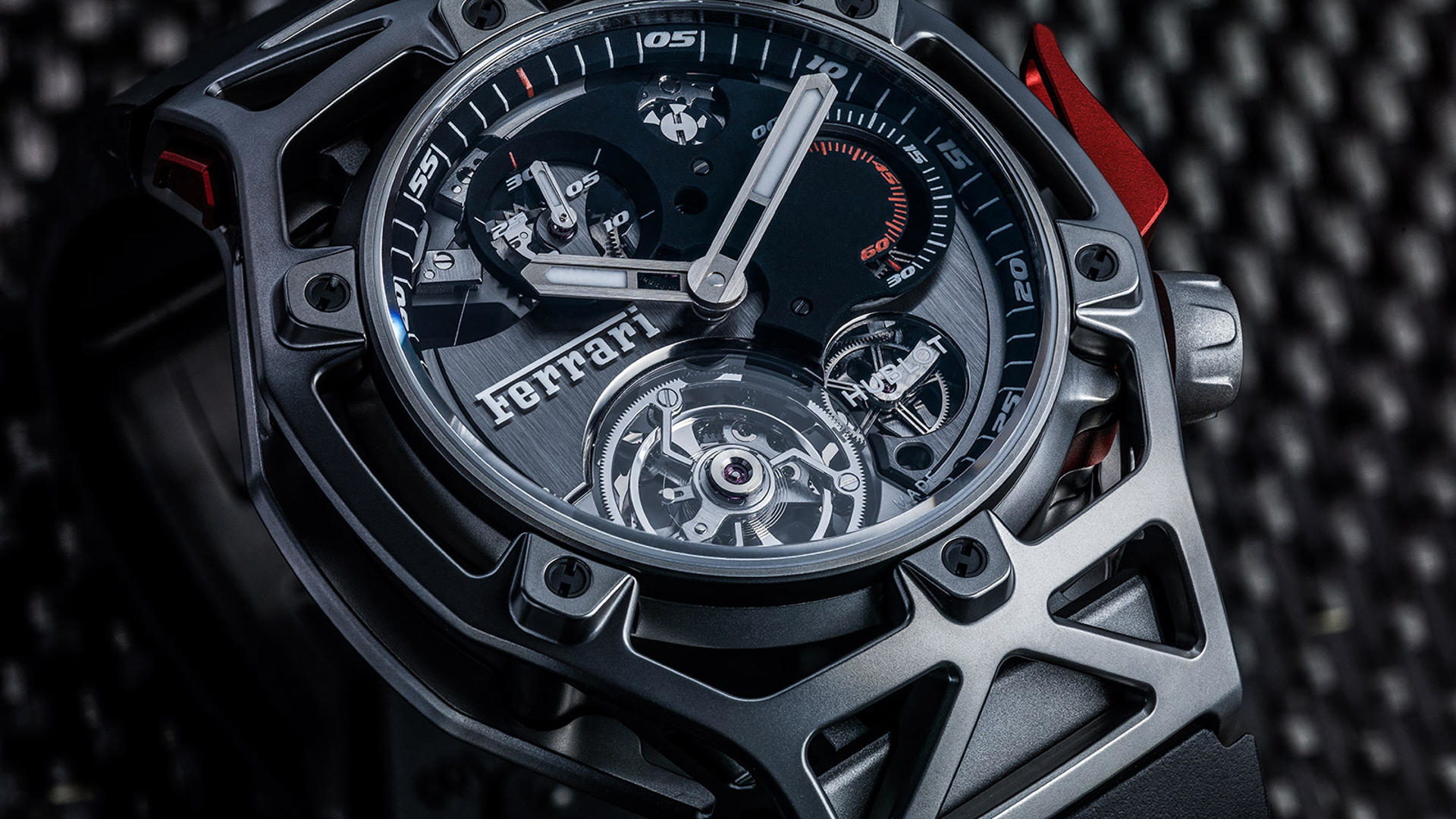 El tradicional socio relojero de Ferrari ha creado para la ocasión un cronógrafo que ha sido bautizado como Techframe Ferrari 70 Years Tourbillon Chronograph, diseñado por Ferrari (en un proceso creativo semejante al que se sigue para crear un deportivo) y construido, a mano, por la firma relojera, rodeando la esfera con un “chasis” de aspecto muy técnico y disponible en tres acabados: King Golf, PEEK Carbono y titanio.