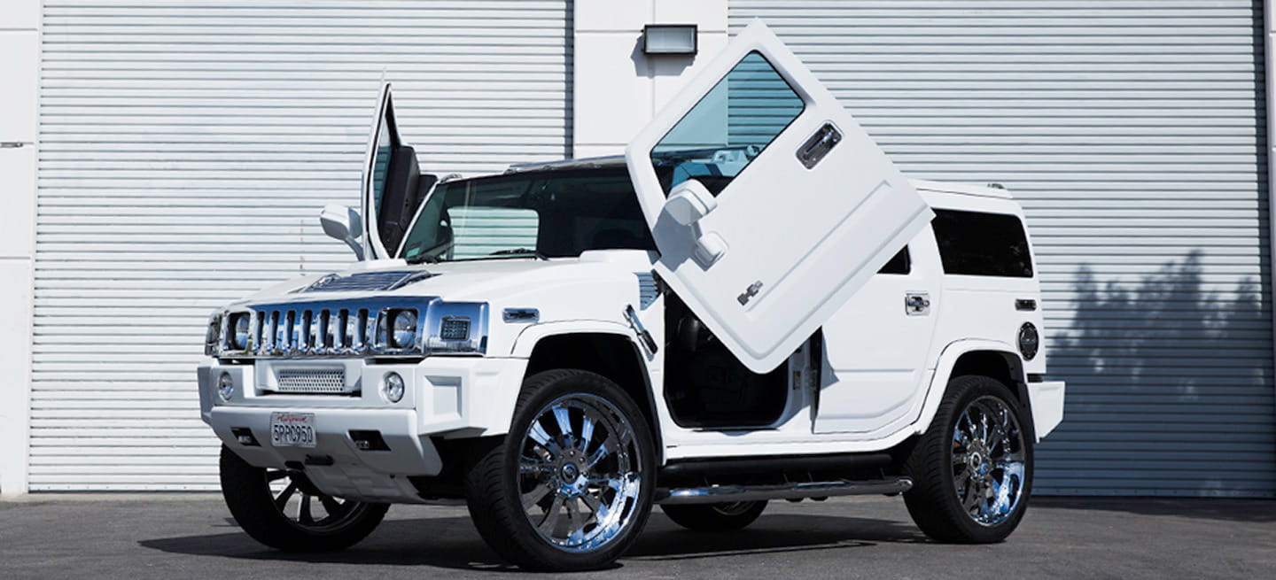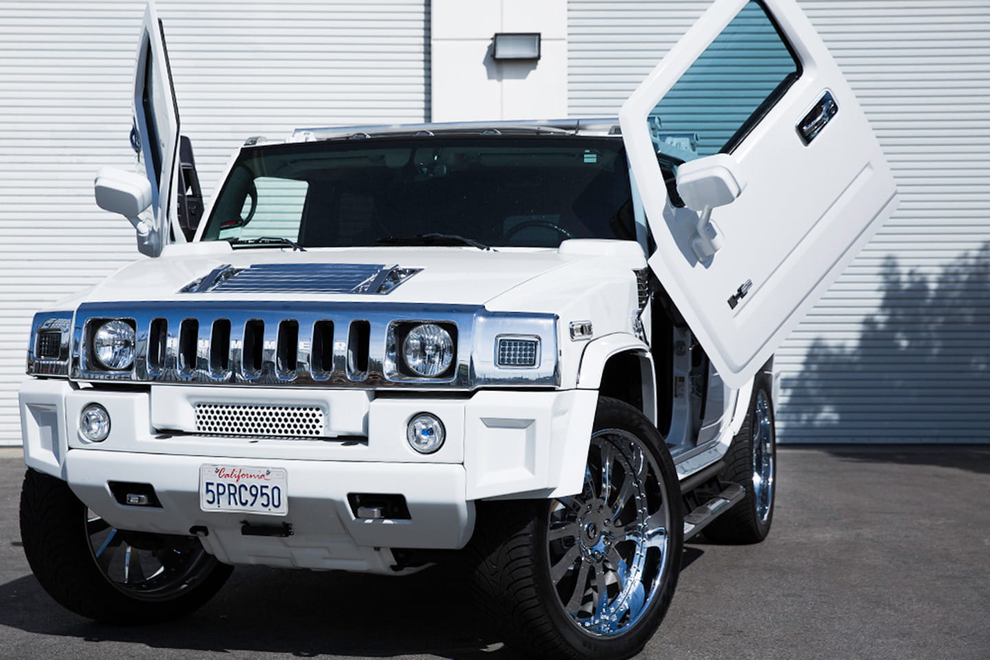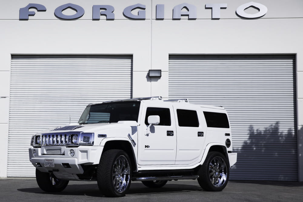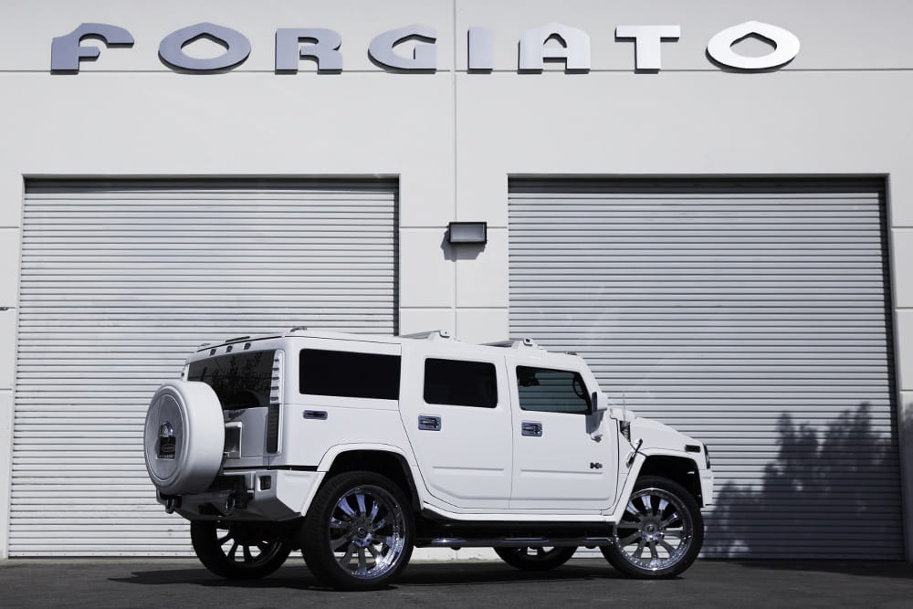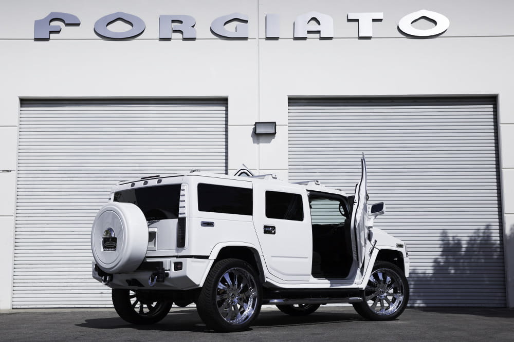 Desarmada y cautiva, la marca Hummer dejó de comercializarse hace años. Pero eso no impide que sus todoterreno sigan estando en los planes de muchos preparadores y sigan siendo objeto de preparaciones, en ocasiones ridículas, dignas de un video clip de Snoop Dogg. En esta ocasión ha sido Forgiato, fabricante especializado en llantas, el que nos ha mostrado su idea de un Hummer H2 con llantas de 24″ cromadas y, lo que es aún más preocupante, puertas de tijera, estilo Lamborghini.