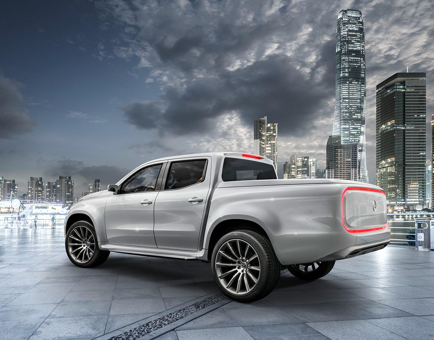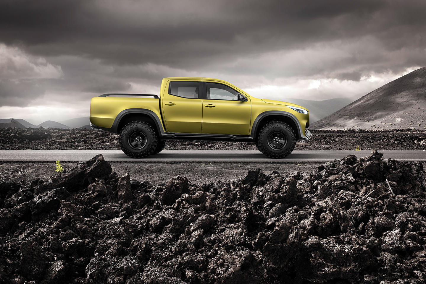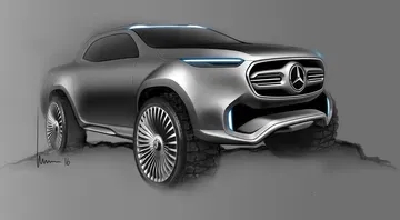 Mercedes ya posee un verdadero todoterreno premium, y se llama Clase G. Es una máquina muy capaz, pero también realmente prohibitiva, construida sobre una plataforma anacrónica. El Mercedes Clase X se basa en la plataforma del Nissan Navara, que también ha pergeñado una pick-up en la Alianza Renault-Nissan, la Renault Alaskan. Comparte plataformas con ambas, pero el diseño será único, empleando los códigos de estilo de la marca, como una gran calandra de forma ovalada y unas ópticas con diodos diurnos integrados. Grandes llantas, protecciones cromadas en la defensa, o barras antivuelco en la caja son algunos detalles ya visibles.