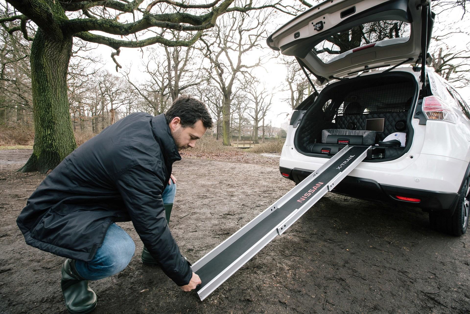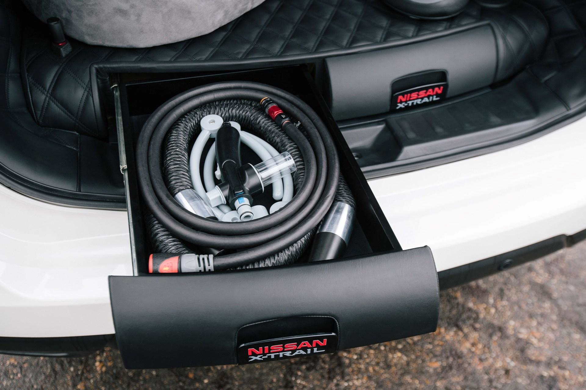 ¡Incluso tiene una ducha! Sí, después de haber estado con el perro en el campo puedes lavarlo en la ducha extensible y secarlo con el secador incorporado, listo para llegar ya limpio a casa. Además para acceder a este cómodo espacio nuestro perro no tendrá ni que saltar ya que Nissan ha colocado una rampa para que puedan subir sin esfuerzo.