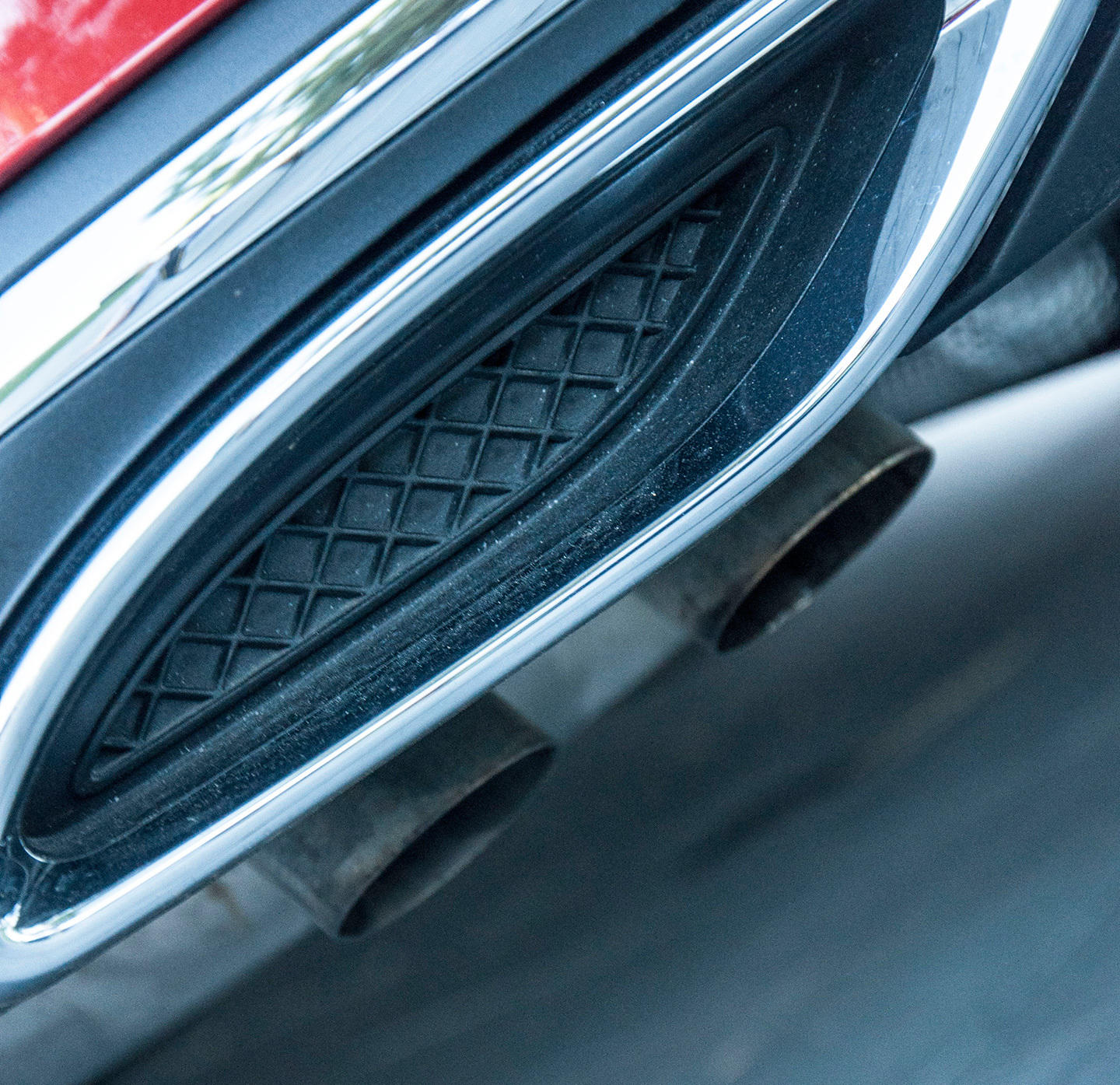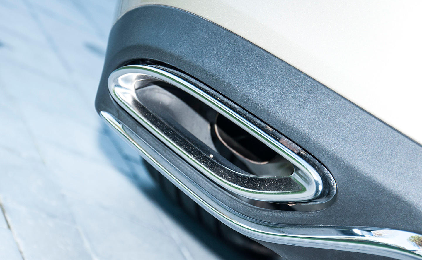 El caso del diésel es aún más flagrante. La presencia de dos colines de escape, juntos, y a un lado, en un Mercedes Clase E 220d Coupé de cuatro cilindros y 194 CV de potencia, no podía impedir la existencia de los correspondientes cromados que emulan dos salidas de escape, una a cada lado. Y por ello se recurrió a una solución tan poco decorosa como esta, en la que las salidas de escape reales apuntan hacia la carretera. En este caso, además, nos encontramos con un ejemplo práctico de la funcionalidad que ha conseguido Mercedes-Benz. Orientar las salidas de escape hacia el asfalto ayuda a reducir el hollín que a menudo se acumula en la parte trasera de nuestros coches, y emitida por el escape. Un caso similar al que veíamos hace poco en Peugeot.