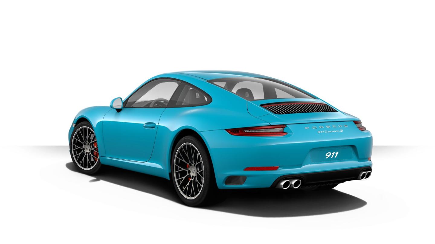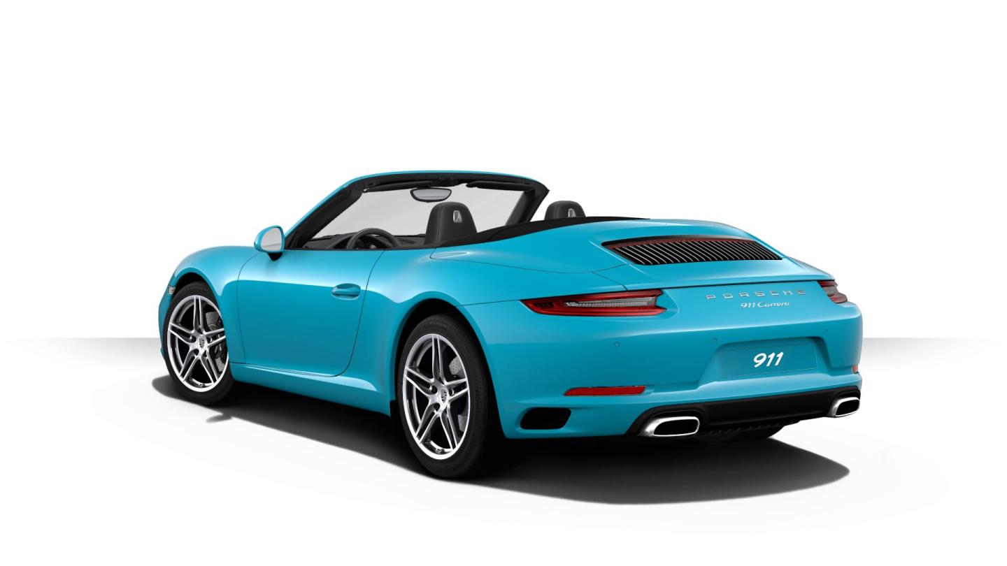 No apto para discretos, Porsche nos ofrece en el catálogo de pinturas del nuevo Porsche 911, entre la lista de colores especiales, este peculiar “Azul Miami” que a buen seguro convencerá a más de un cliente de la firma germana dispuesto a no pasar desapercibido.