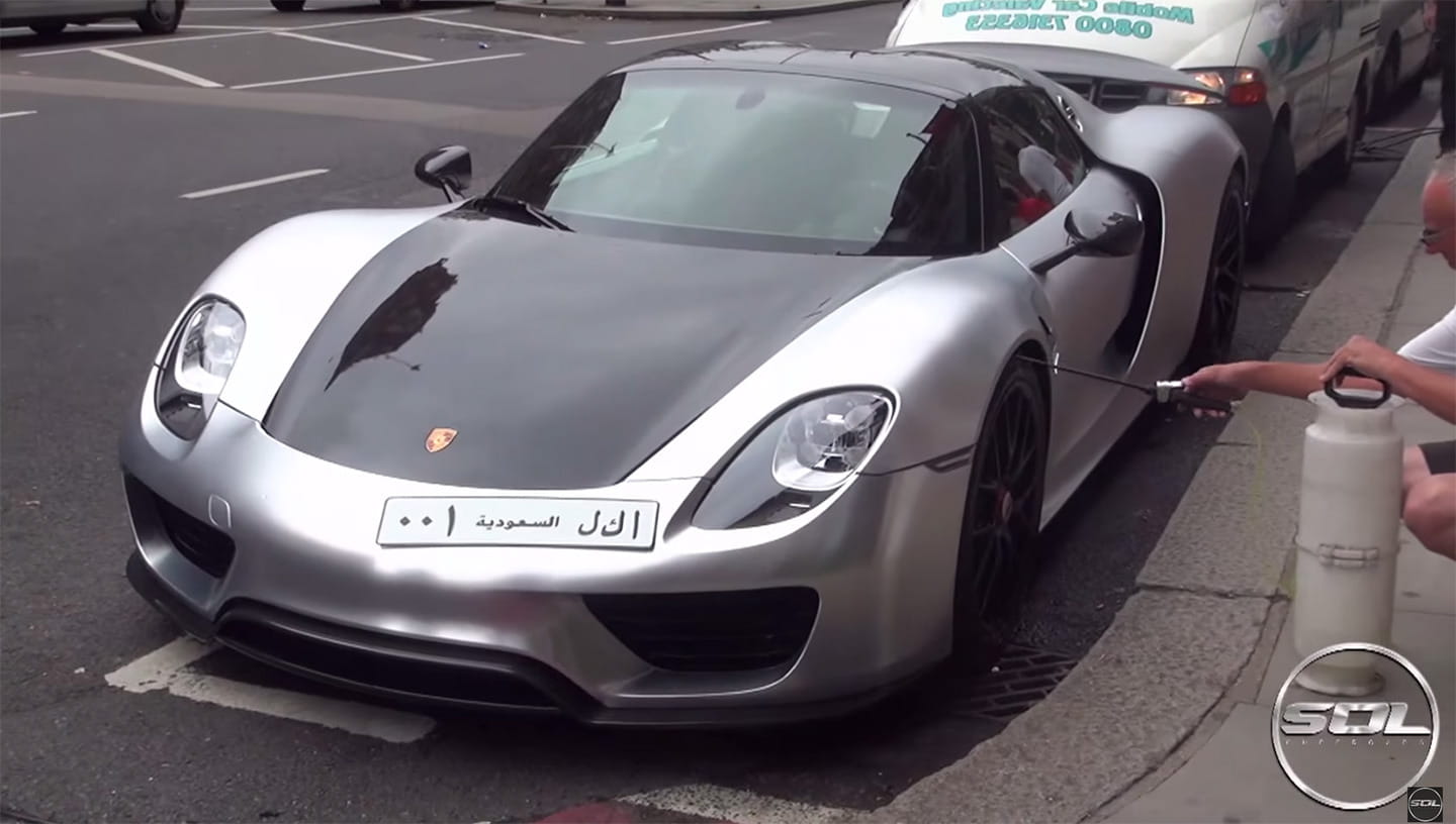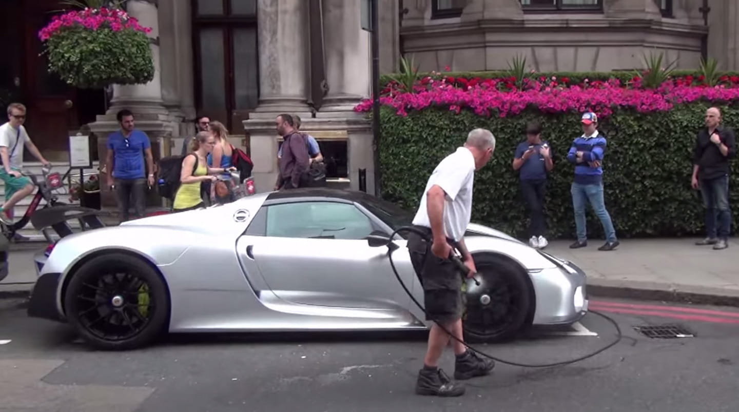 En Londres comienzan a estar, digámoslo coloquialmente, hasta las narices de los conductores de superdeportivos. Generalmente por el ruído que generan al pasear por el centro de la ciudad. Hasta el punto de plantearse prohibir explícitamente revolucionar en exceso el motor, mantenerlo encendido mientras están detenidos o incluso circular en grupos. Generalmente están molestos por la «invasión» de conductores, generalmente procedentes de Oriente Próximo, que pasan largas temporadas en la ciudad, y que viajan con sus deportivos para exhibirlos por la calle de la ciudad. Pero lo que no podíamos imaginarnos era que algunos conductores llegasen al punto de dificultar el tráfico en una calle congestionada de Londres para limpiar su flamante superdeportivo en la vía pública, como hemos visto en este vídeo de un Porsche 918 Spyder.