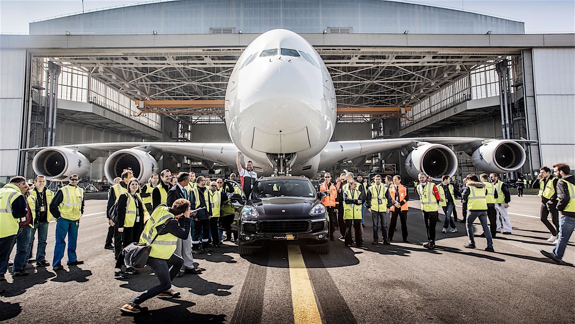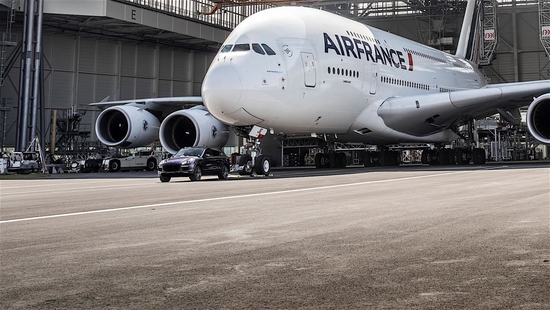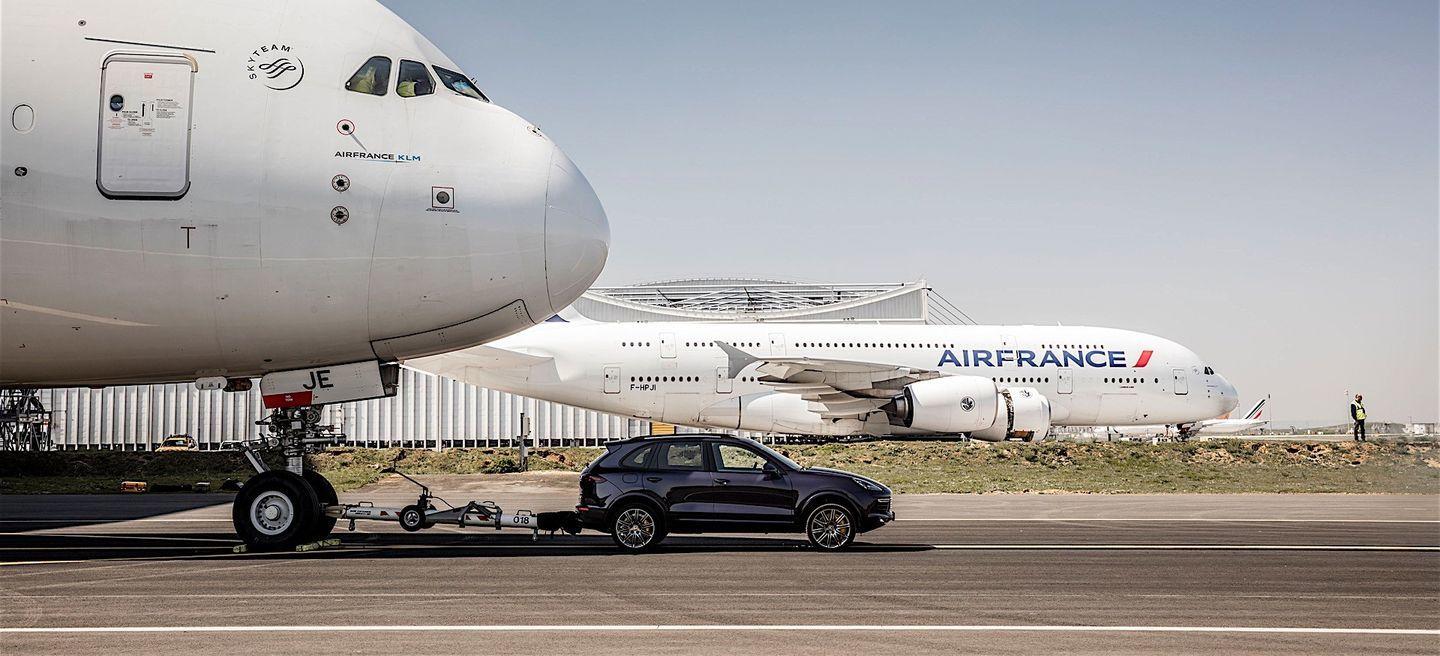 El récord de Porsche tuvo lugar en el aeropuerto parisino de Charles de Gaulle, con la ayuda de Air France, que facilitó el avión para la maniobra de relaciones públicas. Porsche afirma que los Cayenne usados eran totalmente de serie, y que sólo hubo que fabricar un adaptador para conectar el Airbus a la bola de remolque estándar del todocamino alemán. Cuando Volkswagen remolcó el Boeing 747 hace ya 11 años tuvieron que cargarlo con 7 toneladas de lastre para que traccionase adecuadamente. En este caso nadie menciona lastre alguno: no necesitarlo añade aún más mérito a la hazaña.