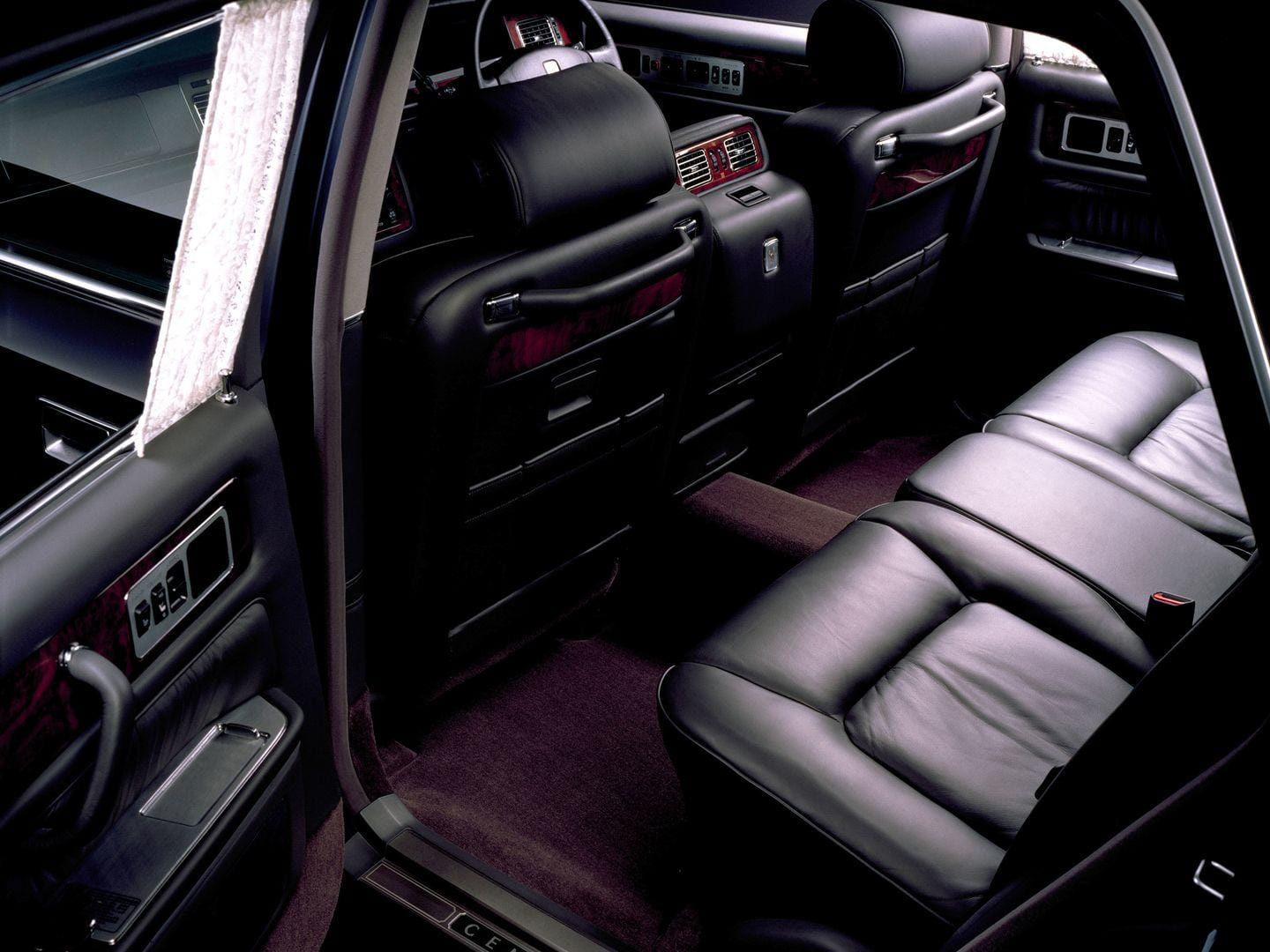 El lujo japonés es una experiencia silenciosa y refinada, y abrir o cerrar una puerta mecánicamente es considerado poco refinado por algunos clientes. Tal y como lo oyes. El confort es máximo en las plazas traseras, que son reclinables y se desplazan longitudinalmente. Una batalla de 3.025 mm y una carrocería de 5,27 metros – existe una versión limusina aún más larga – permiten que los pasajeros de las plazas traseras puedan estirar sus piernas y apoyar sus pies en unos soportes ad-hoc. En vez de cristales tintados, usan cortinillas de tela.