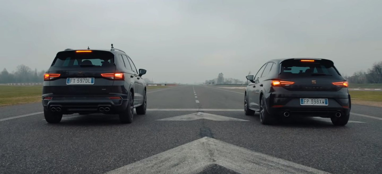 Ahora bien, es más de 200 kilos más ligero que el SUV, pese a ser más lento en el 0 a 100 km/h: la versión DSG firma el 0 a 100 km/h en 5,7 segundos, una cifra que sigue siendo excelente. En la prueba de aceleración de la revista italiana Quattroruote, el Cupra Ateca se impone de forma espectacular al León Cupra R, aprovechando el asfalto frío para explotar al máximo su tracción total. Llama la atención que según las Vbox, el SEAT Ateca hipervitaminado firma un 0 a 100 km/h de 4,85 segundos – casi 0,4 segundos por debajo de la cifra oficial – mientras que el León se conforma con 5,62 segundos.