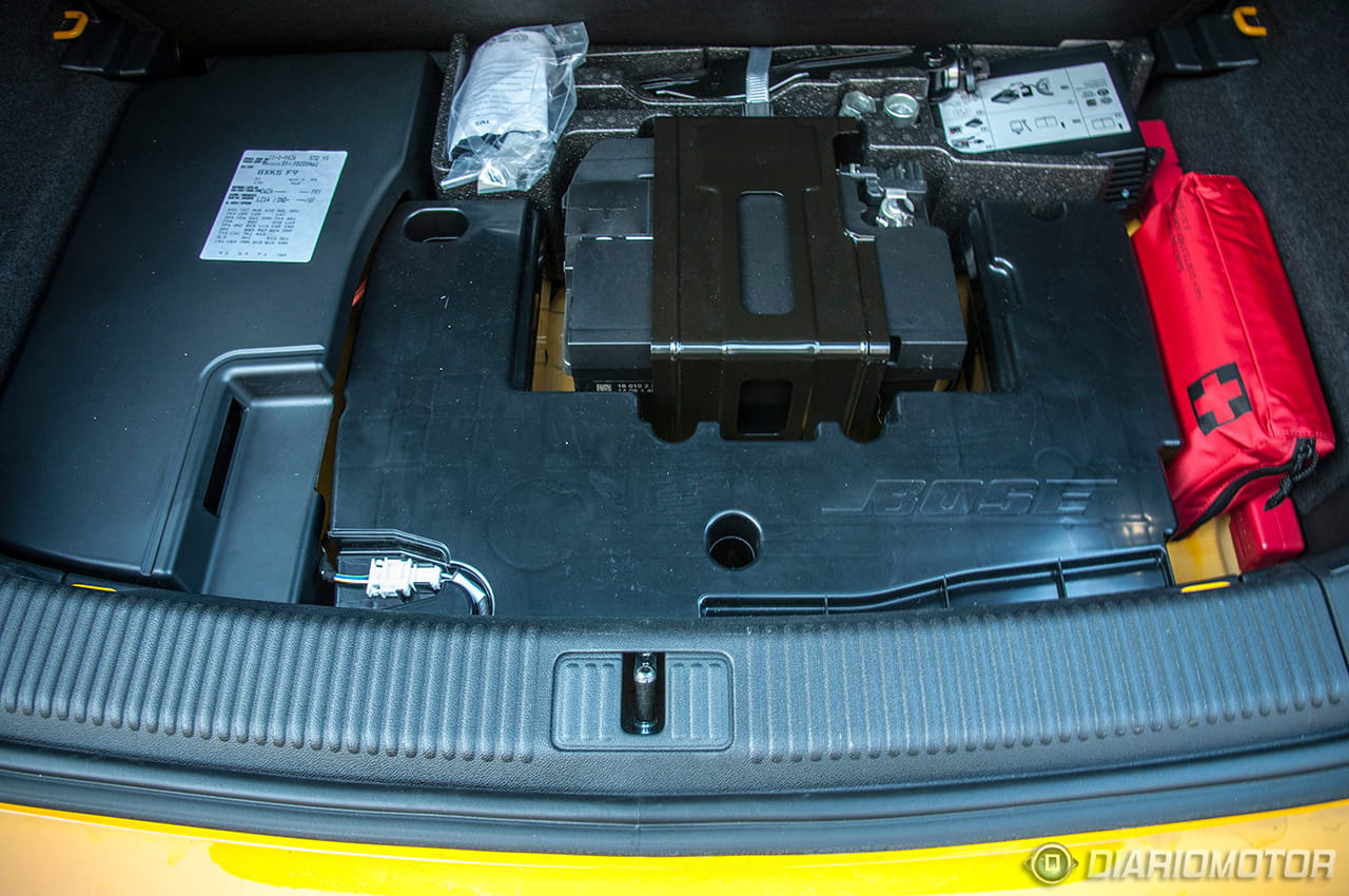 Me estoy preguntando qué sucede con este coche. ¿Por qué el maletero ha perdido espacio y es tan pequeño? No veo rueda de repuesto, pero sí un equipo de Bose, de Bose el bueno, el de los altavoces y los sistemas de sonido de muy alta fidelidad. Perder maletero para instalar un equipo de sonido, sinceramente, me recuerda a mi época más macarra. A esa época en la que aún era novato, con el carné recién sacado, sin dinero para gasolina pero sí para dejarme los ahorros en un equipo de sonido con un subwoofer que ocupa medio maletero. Pero si prestas atención verás que hay más cosas que no cuadran en esta foto.