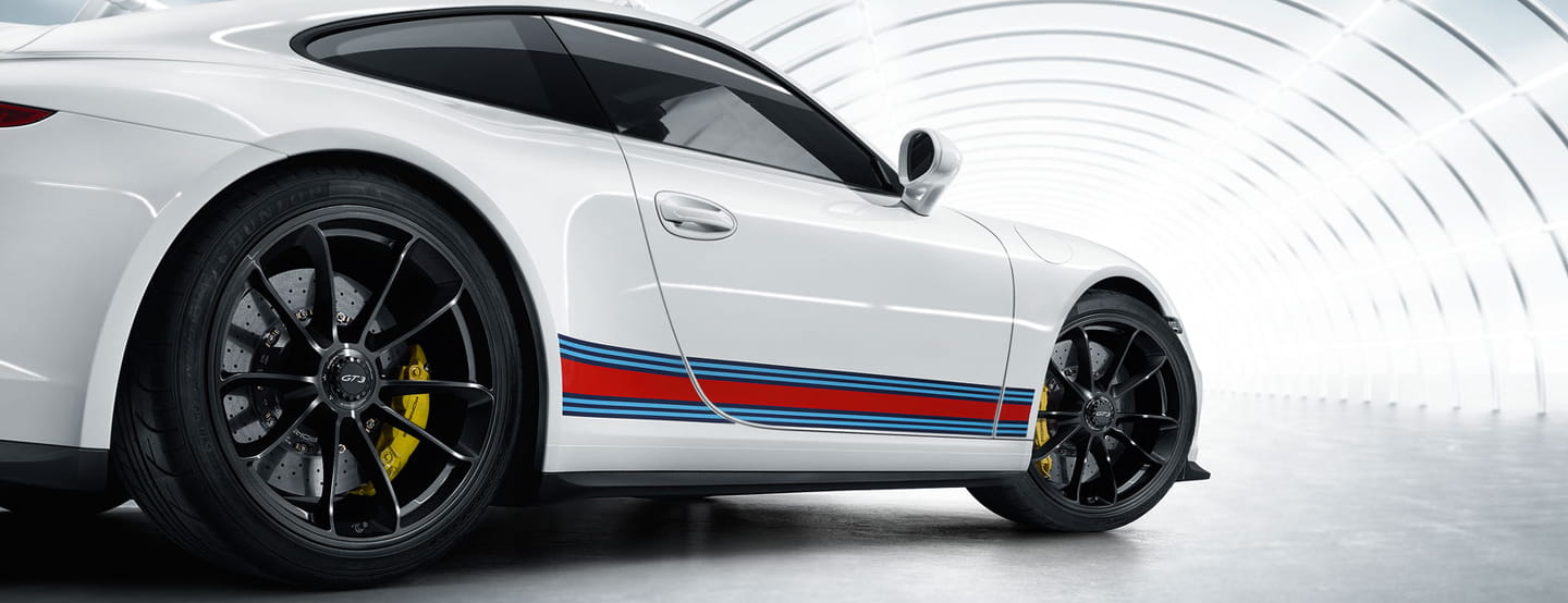 Porsche, a través de su catálogo de accesorios Tequipment, nos ofrece la posibilidad de vestir a nuestro Porsche 911 con los colores de Martini Racing en unos vinilos que se encargarán de dar el toque definitivo de coche de carreras.