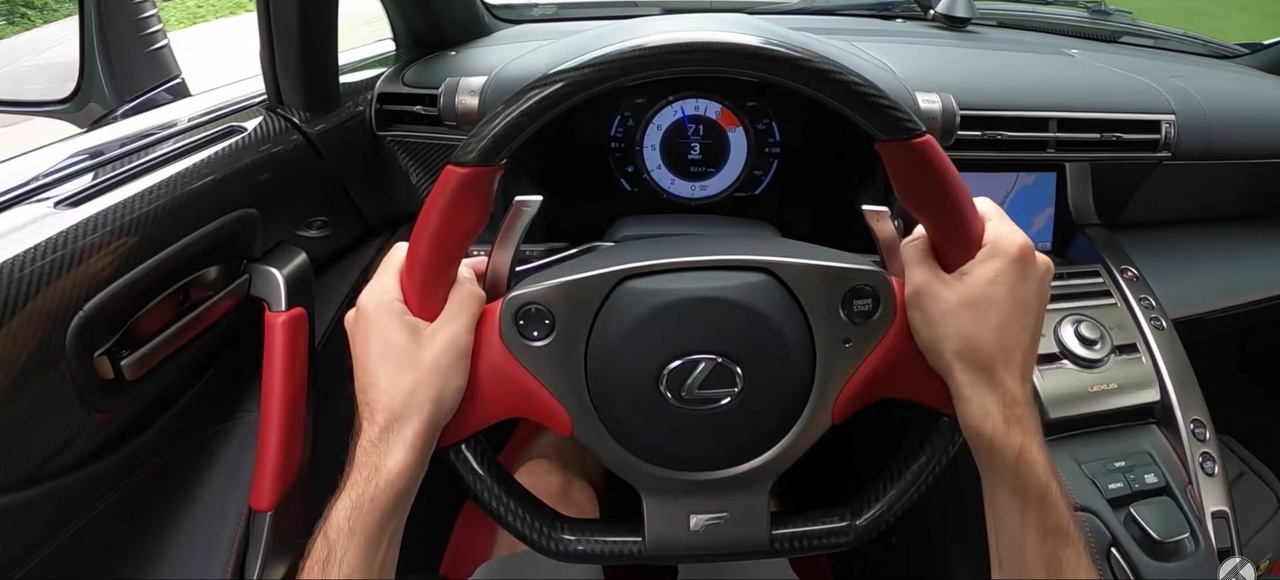 Para empezar es un motor V10 de 4,8 litros capaz de superar las 9.000 rpm – corta inyección a 9.400 rpm. Este motor fue desarrollado por Yamaha, conocida por sus instrumentos musicales y por sus motores de motocicleta de alto régimen de giro. El motor del LFA desarrolla 560 CV de potencia, transmitida al suelo a través de un cambio automático de seis relaciones y un único embrague. No era el coche más rápido de entre sus coetáneos, pero sí fue un coche que asombró al mundo, demostrando la calidad y técnicas de construcción de las que Lexus era capaz.