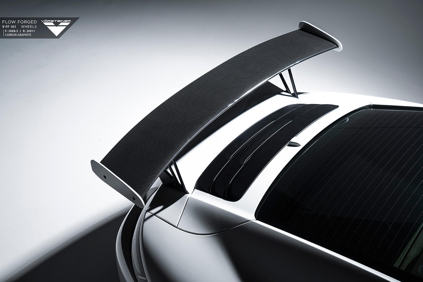 Entre otros elementos disponibles, Vorsteiner ofrece diferentes juegos de llantas de aleación, como las Vorsteiner V-FF 101 FlowForged que equipa esta unidad, con acabado Carbon Graphite.