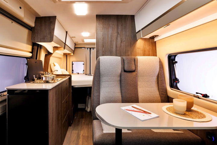 Alemana, con baño variable, camas gemelas y otra adicional en el salón, esta AC cuesta y tiene el mismo ancho exterior que una camper asequible