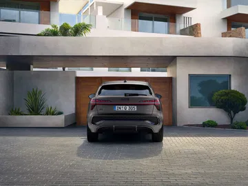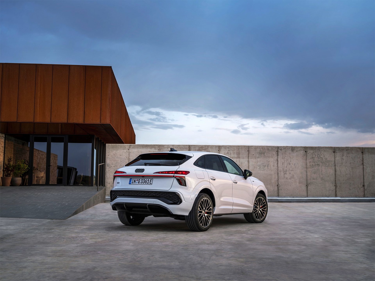 En la parte posterior encontramos una caída muy pronunciada en el portón posterior, con una luneta más pequeña con la que pretende asemejar su imagen a la de un coupé, y coronada en este caso por un pequeño spoiler aerodinámico. Detrás puede equipar pilotos OLED digitales con firma luminosa personalizable y una tira de luz que une ambos grupos, con los aros de Audi iluminados.