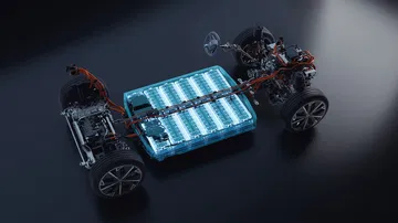Esta admite potencias de carga de 160 kW en C.C y de 12 kW en C.A. Pero pasando a la versión intermedia nos encontramos con 280 CV y 343 Nm de par, siendo la batería ahora de 97,2 kWh de capacidad neta pero la autonomía es igualmente de 572 kilómetros.