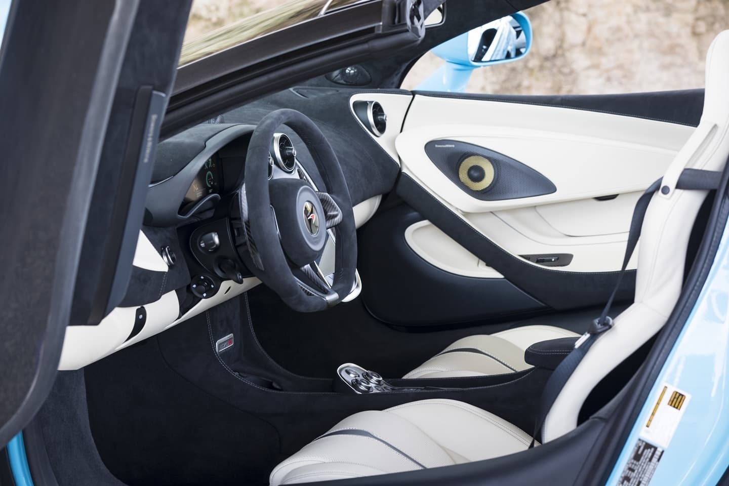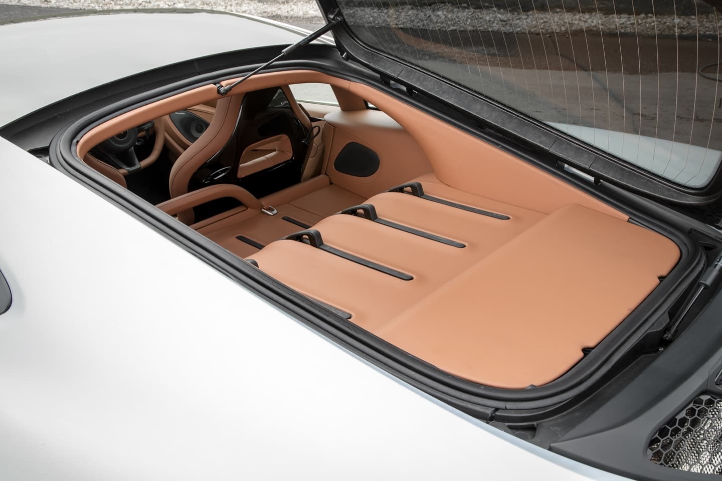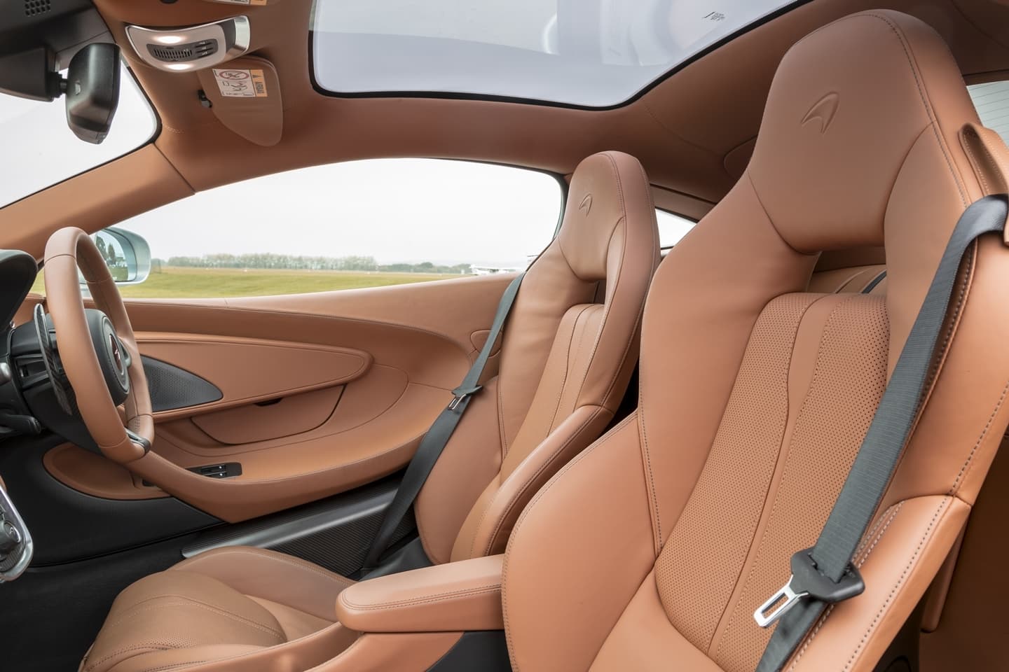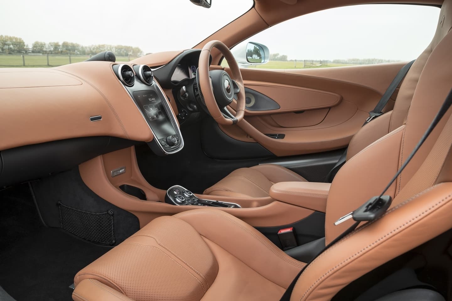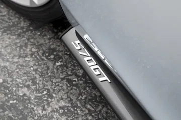 Pero es el McLaren 570GT el modelo más importante que ha sido desarrollado en la gama. Pensando en un enfoque más GT y un uso más lúdico, McLaren decidió diseñar una carrocería y habitáculo ligeramente diferenciados del McLaren 570S original. De este modo se creó un habitáculo donde se mejoraba el confort, se empleaban nuevos y mejores materiales y se añadía un espacio de carga adicional sobre la cubierta del propulsor que quedaba cerrada mediante una sección de cristal practicable que es el elemento más diferenciador de esta versión.