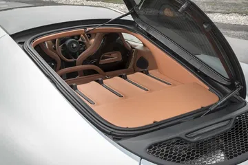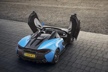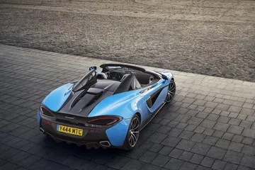 En el McLaren 570S Spider, la carrocería descapotable cuya única y principal diferencia reside en el uso de un techo retráctil metálico derivado del sistema que han empleado otros modelos de la marca como el McLaren 650S Spider.