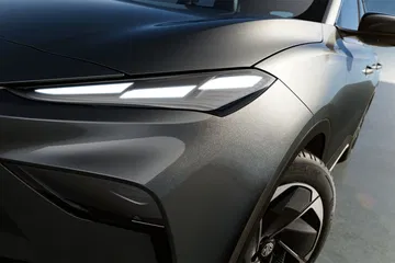 Esta afirmación tiene base, sobre todo, en su frontal, donde irrumpe la moda de dividir el típico faro en dos partes para tener uno más estilizado encargado de aportar identidad con la firma lumínica y otro, el faro principal, situado en una posición más en el paragolpes. Esto, por supuesto, por partida doble y a cada lado de la estampa, que tiene una apariencia muy limpia debido a que al tratarse de un coche eléctrico, la presencia de una calandra para refrigerar el motor térmico no es obligatoria.