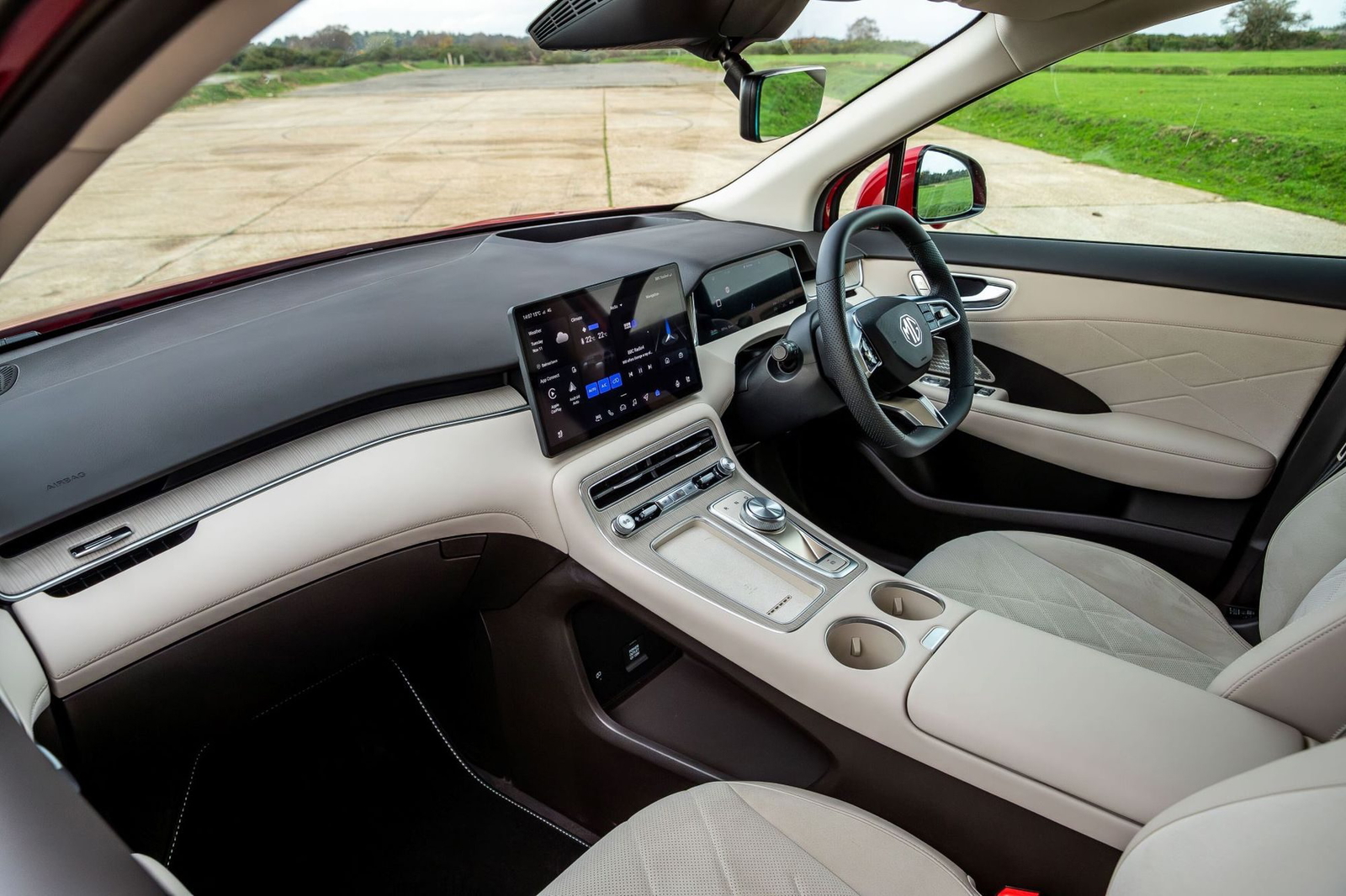 El interior del MGS6 sigue los estándares habituales en los coches de origen chino. Tiene un interior amplio en todas sus cotas, de diseño minimalista y muy tecnológico. No tiene mucha personalidad, y el salpicadero está dominado por una pantalla flotante de 12,8 pulgadas. Su instrumentación es digital y en su consola central tiene un cargador inalámbrico de 50 watios de potencia. Todos los asientos tienen calefacción – los delanteros también ventilación – y puede tener un enorme techo solar de 1,96 metros cuadrados de superficie.