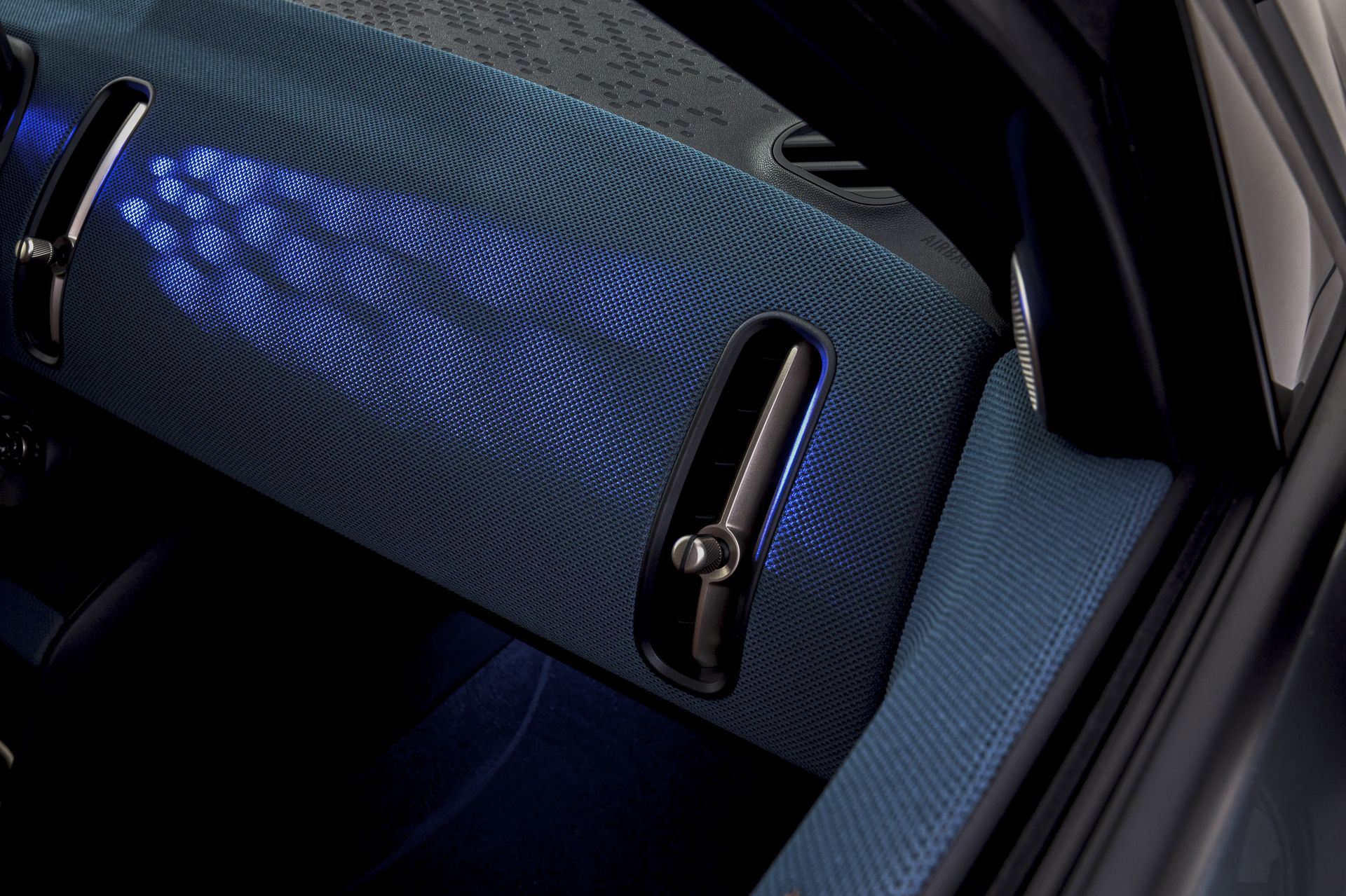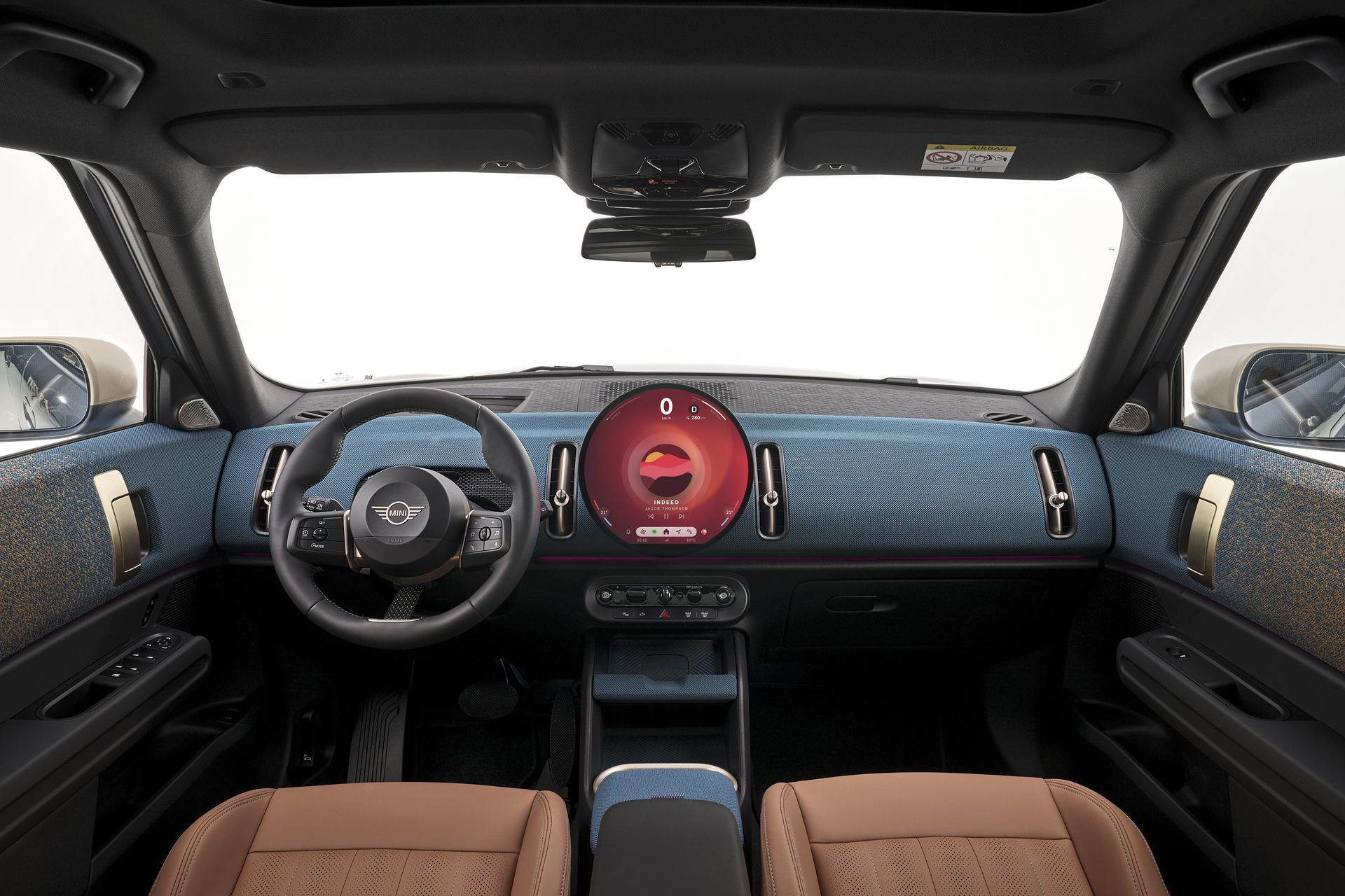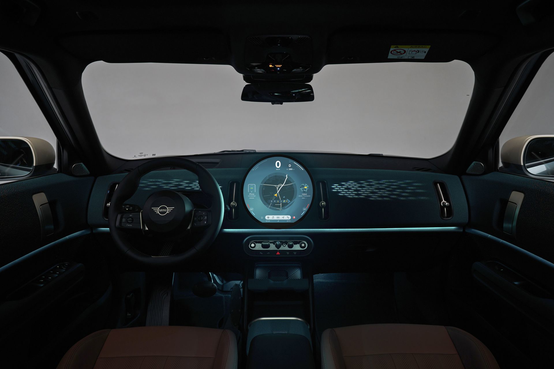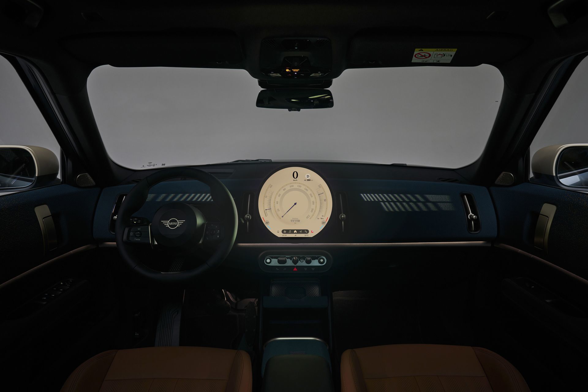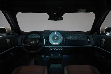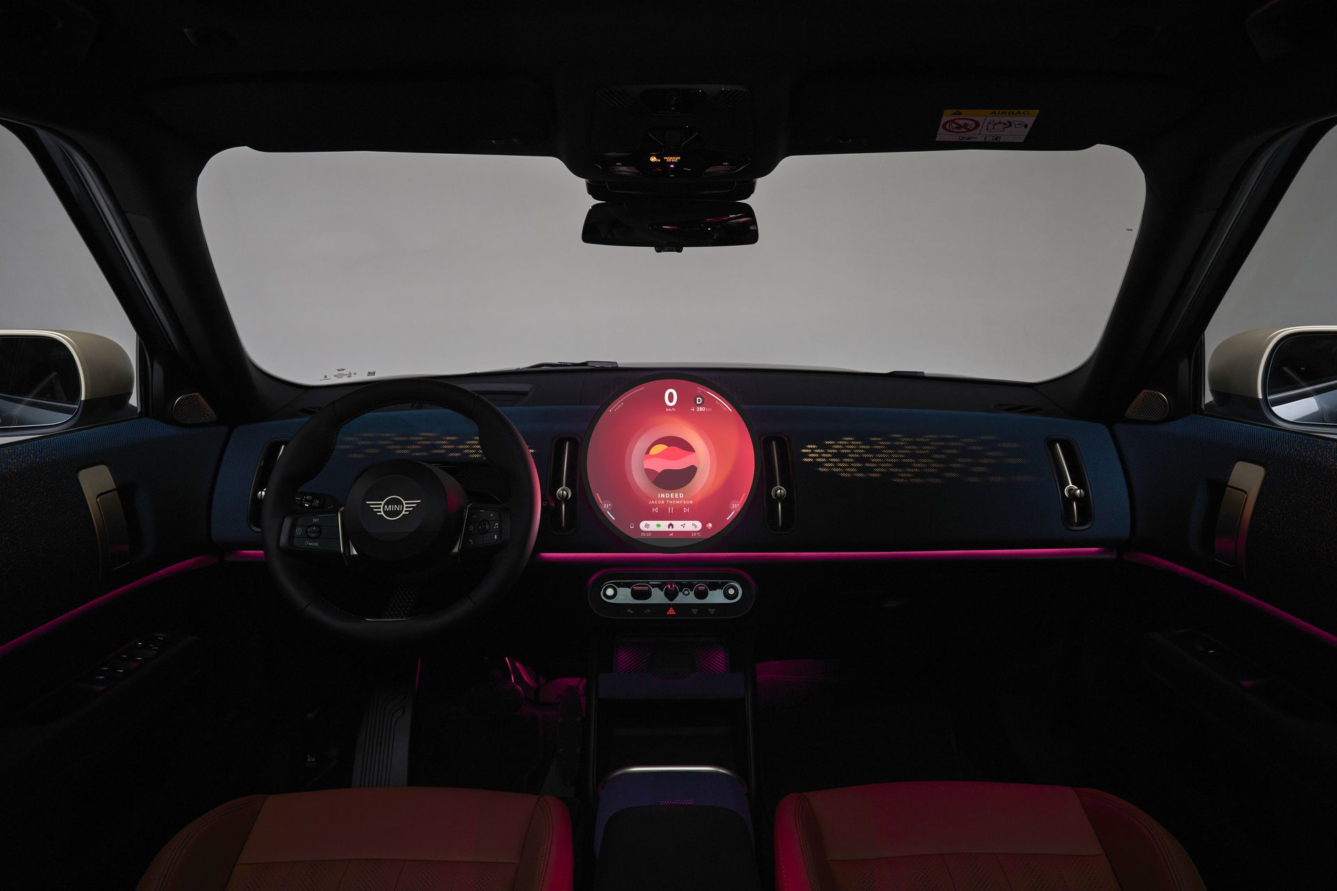Se trata de un interior con un nivel premium de acabados, ajustes y materiales y, de nuevo, con muchas posibilidades de personalización en colores, tapicerías y detalles como la iluminación multicolor. De su salpicadero destaca una curiosa pantalla OLED de 240 mm de diámetro, llamada Interaction Unit, donde se aglutina el equipo de infoentretenimiento y la instrumentación. Tiene muchas posibilidades de ajuste e incluso puede mostrar un aspecto clásico, que nos recuerda a los MINI de antaño. El asistente de voz con el que podemos interactuar para activar diversas funciones del coche se llama Spike.