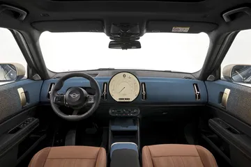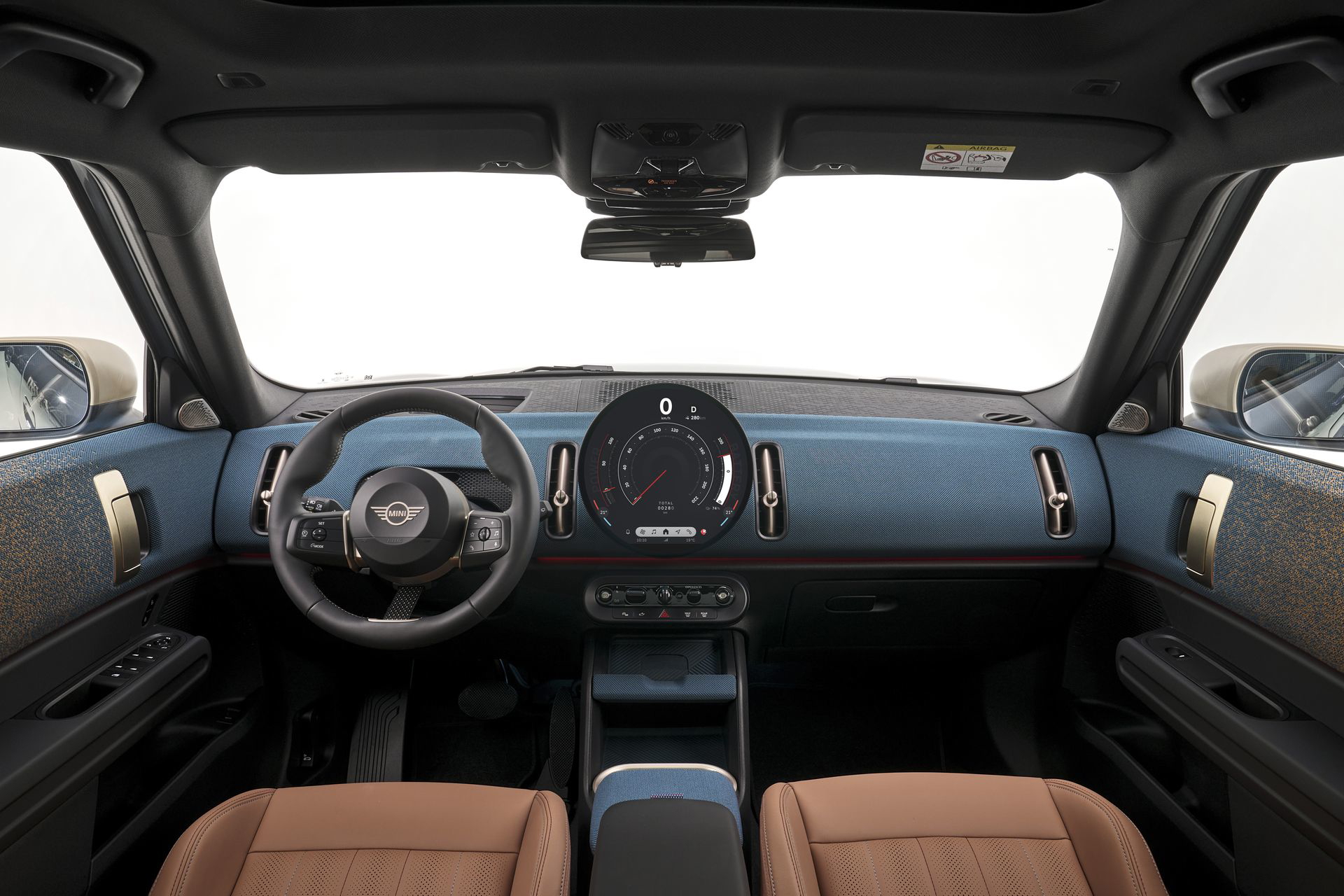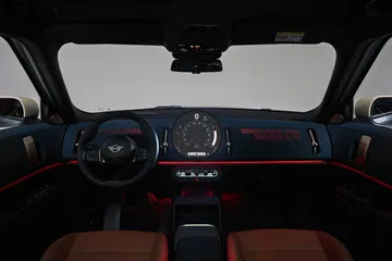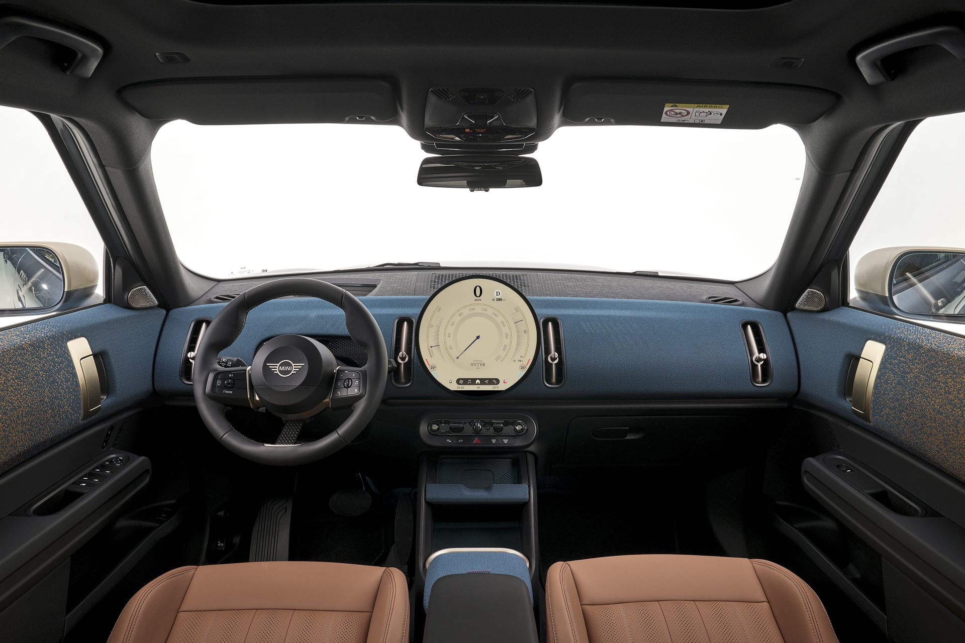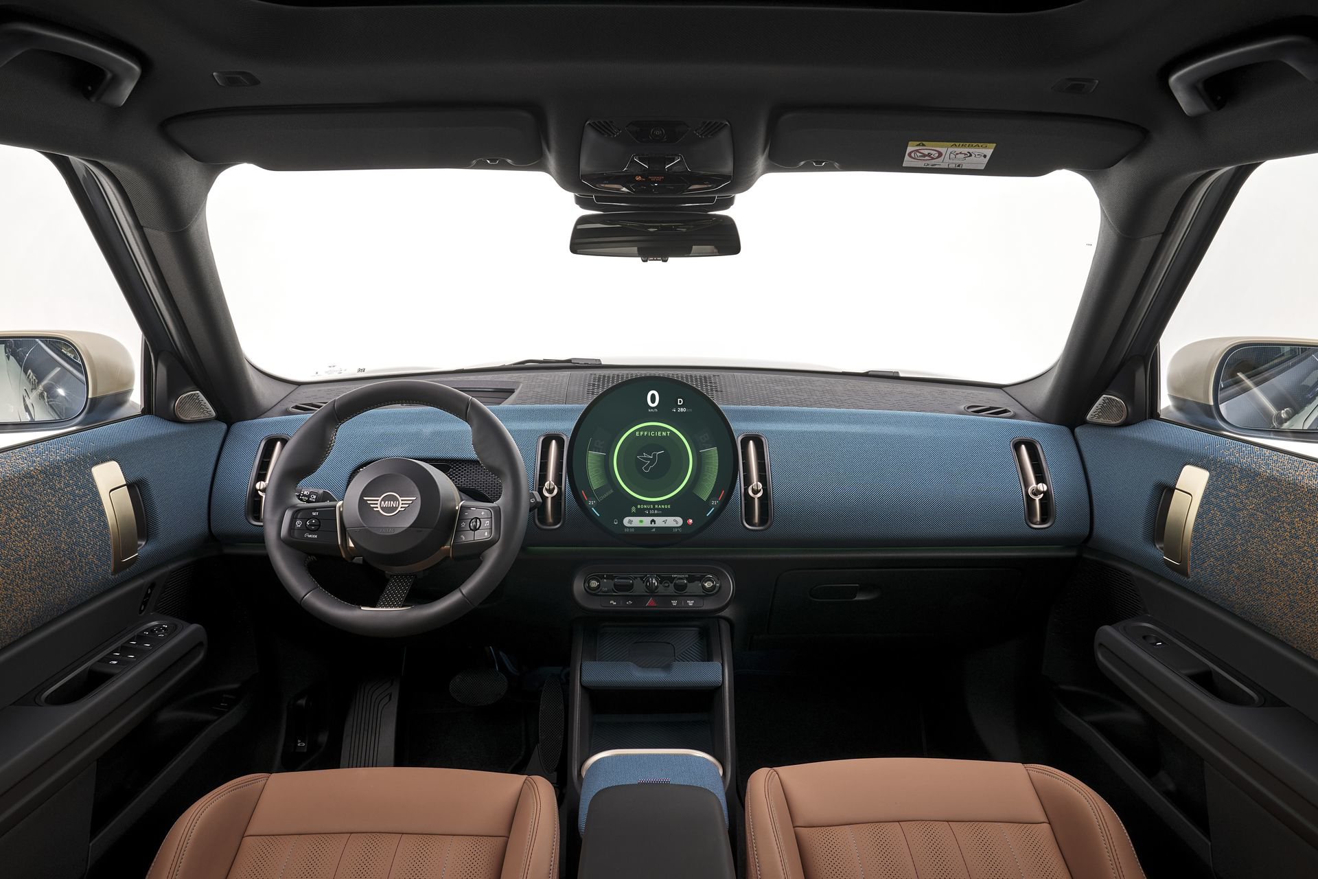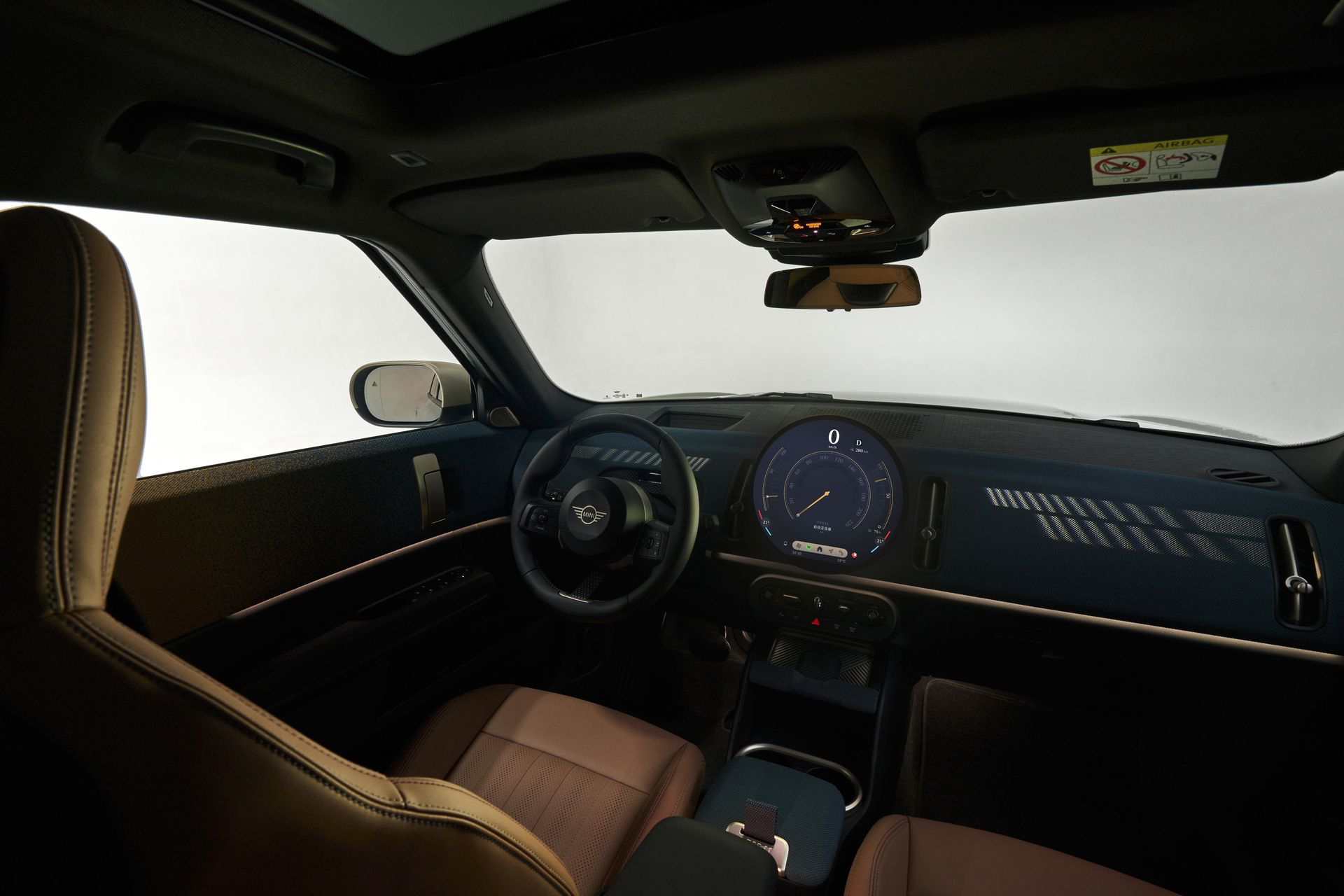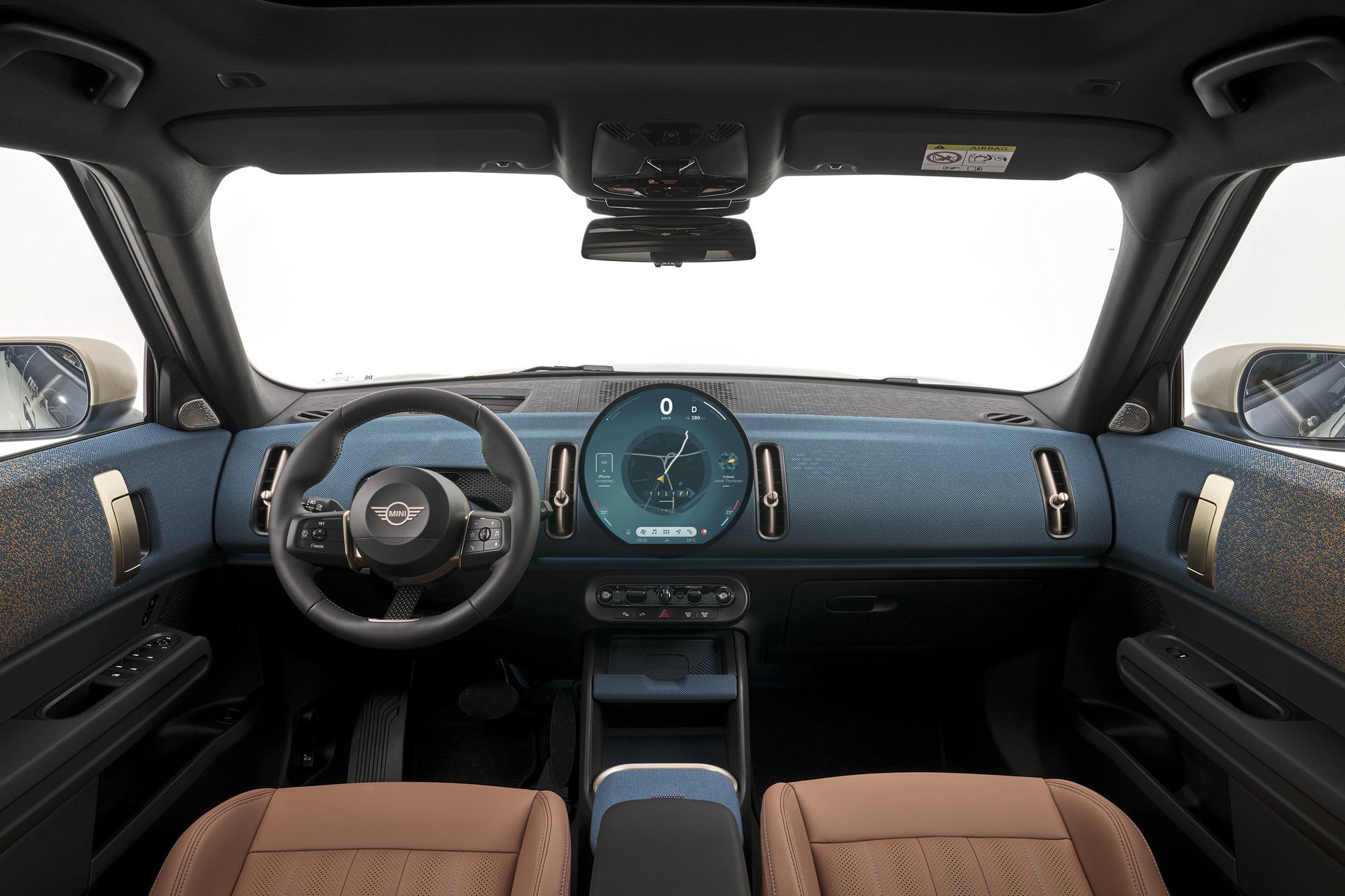 Se trata de un interior con un nivel premium de acabados, ajustes y materiales y, de nuevo, con muchas posibilidades de personalización en colores, tapicerías y detalles como la iluminación multicolor. De su salpicadero destaca una curiosa pantalla OLED de 240 mm de diámetro, llamada Interaction Unit, donde se aglutina el equipo de infoentretenimiento y la instrumentación. Tiene muchas posibilidades de ajuste e incluso puede mostrar un aspecto clásico, que nos recuerda a los MINI de antaño. El asistente de voz con el que podemos interactuar para activar diversas funciones del coche se llama Spike.