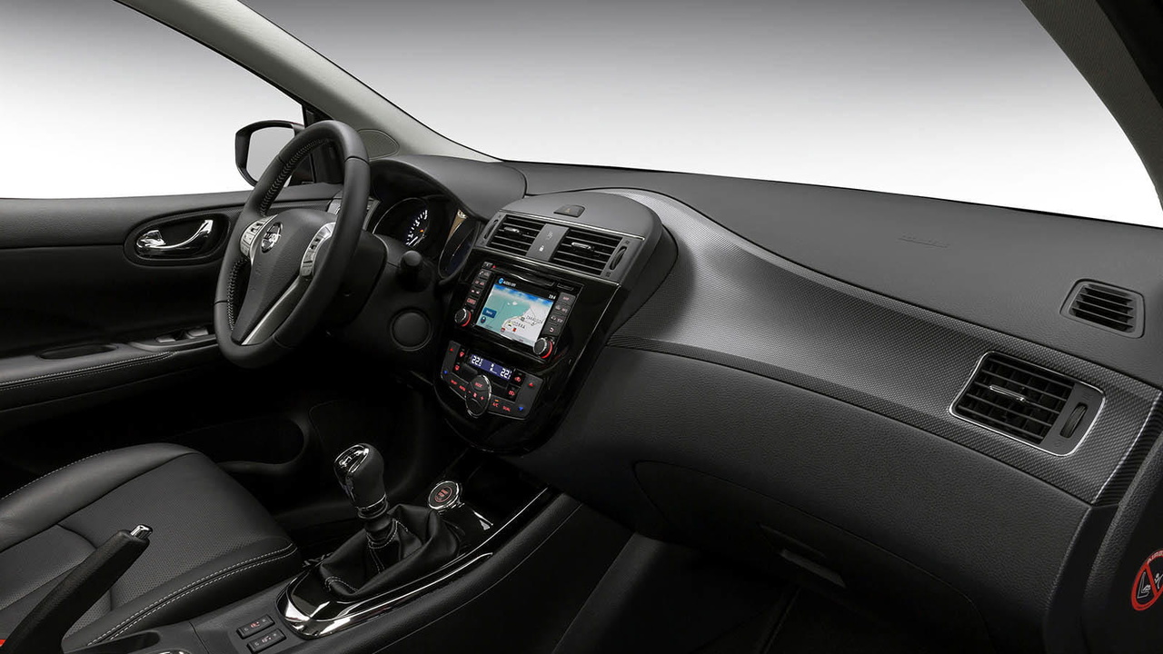 El Nissan Pulsar es un coche sencillo, en materiales y diseño interior, pero sus ajustes son bastante buenos. Es recomendable equipar el sistema NissanConnect, un equipo de entretenimiento con pantalla táctil; (ver foto de Nissan Connect). En cuanto a equipamiento, el Pulsar puede incluir tapizados de piel, climatizador bizona, retrovisores calefactados, cristales traseros oscurecidos y asientos delanteros calefactados, por lo que tiene poco que envidiar a cualquiera de sus rivales compactos del mercado.