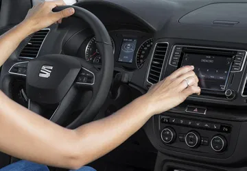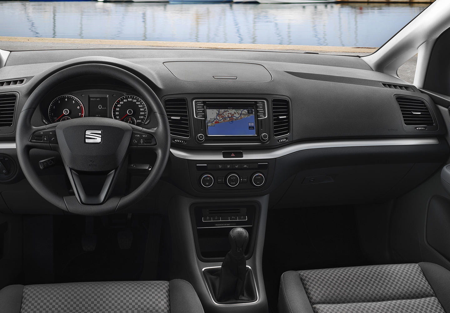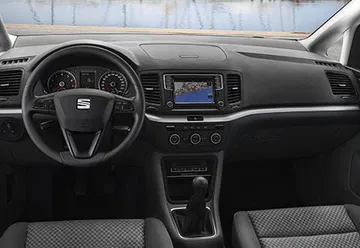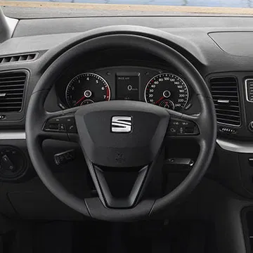 El SEAT Alhambra es una versión ligeramente más asequible del Volkswagen Sharan, un coche con el que comparte prácticamente la totalidad de elementos interiores y exteriores salvo el logotipo de la marca y la forma del volante.