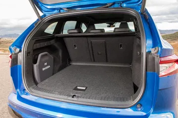 Skoda no ha querido en ningún momento encuadrar el Skoda Enyaq dentro de un corsé técnico. A medio camino entre el SUV moderno y el monovolumen, estamos ante un coche polivalente, con una imagen atractiva y unas dimensiones que ayudan a su habitabilidad y a la capacidad de carga. Sus dimensiones se sitúan en los 4.658 mm de longitud, 1.879 mm de anchura y 1.622 mm de alto, destacando la batalla de 2.766 mm y un maletero muy amplio, con hasta 585 litros de capacidad con los asientos sin abatir.