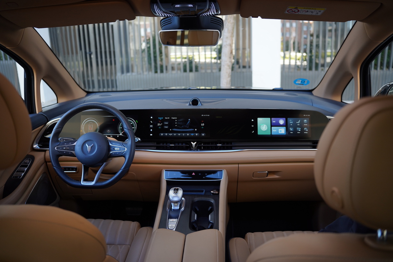 El interior del VOYAH Dream está diseñado para ofrecer el máximo confort en cualquier desplazamiento. Dispone de un habitáculo espacioso, ideal para familias o usuarios que buscan gran capacidad de carga, aunque con materiales de alta calidad y acabados más propios de una berlina de marca premium mientras que el equipamiento tecnológico incluye pantallas digitales y sistemas avanzados de infoentretenimiento.